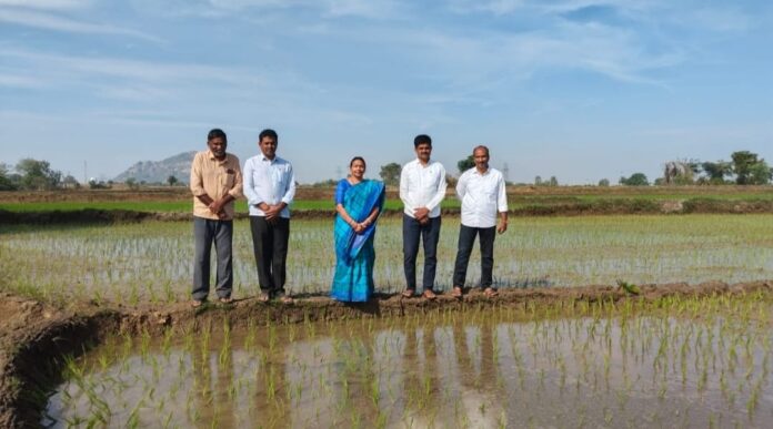 హుజురాబాద్ మండలం పోతిరెడ్డిపేటలో జిల్లావ్యవసాయ అధికారి జొన్నలవాడి భాగ్యలక్ష్మి పంటలను పరిశీలించి రైతులకు సలహాలు సూచనలు తెలియజేశారు. వరిలో సమగ్ర ఎరువుల వాడకంలో కాంప్లెక్స్ ఎరువులు అయిన 20:20:0:13 లాంటి ఎరువులను వాడకూడదని దీనిలో 13 శాతం గంధకం వలన పంటపై సల్ఫైడ్ ఇంజురీ ప్రభావంతో దెబ్బతినడం జరుగుతుందని, రైతులు అధిక ధర వుందని పొటాష్ నీ వాడడం తగ్గించారని నాటు వేసిన 30 రోజులు లోపు పొటాష్ వేయాలని తెలియజేశారు. ఒకే వరి పంట పండించే పొలాల్లో రైతులు ప్రతి యాసంగిలో జింక్ సల్పేట్ ని ఎకరాకి 20 కిలోలు ప్రధాన మడిలో ఆఖరి దమ్ములో తప్పక వేయాలన్నారు. నాటువేసే ముందు నారు ఆకు కోనలు కత్తిరించి నాటలన్నారు. పంటల నమోదు పక్రియలో ఏఈఓ లు క్షేత్ర సందర్శన చేసినప్పుడు రైతులు సాగు చేసిన పంటలను సర్వే నెంబర్ల వారీగా వివరములు తెలియజేయాలన్నారు. దీని ఆధారంగానే కొనుగోలు కేంద్రాల్లో కొనుగోలు చేస్తున్నారని తెలియజేశారు. ఈ కార్యక్రమములో హుజురాబాద్ మండల వ్యవసాయ అధికారి చాడ భూంరెడ్డి, వ్యవసాయ విస్తరణాధికారి పొద్దుటూరి సతీష్, రైతులు మూల చంద్రశేకర్ రెడ్డి, వంగల వెంకట్ రెడ్డి పాల్గొన్నారు.