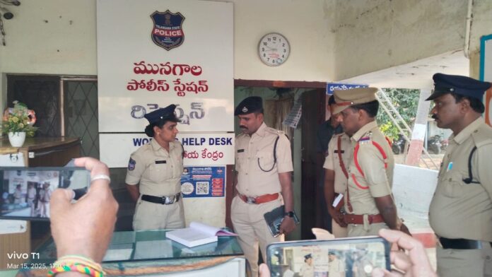 సూర్యాపేట జిల్లా ఎస్పీ కె.నరసింహ మునగాల మండల కేంద్రంలో పోలీస్ స్టేషన్ ను శనివారం ఆకస్మిక తనిఖీ చేశారు. ఈ సందర్భంగా పోలీస్ స్టేషన్ రికార్డుల నిర్వహణపై సమీక్షించారు. అలాగే సరిహద్దు గ్రామాలపై ప్రత్యేక నిఘా వేయాలని ఎస్సై ప్రవీణ్ కుమార్ కు సూచించారు. బాల్య వివాహాలు, అసాంఘిక దురాచారాల కట్టడికి చర్యలు తీసుకోవాలన్నారు. లోన్ యాప్, సైబర్ మోసాల పై ప్రజలకు అవగాహన కల్పించాలని పేర్కొన్నారు. అనంతరం పోలీస్ స్టేషన్ పరిధిలో ఉన్న గ్రామాలలోని పరిస్థితులను ఎస్సై, సి ఐ లను అడిగి తెలుసుకున్నారు. శాంతి భద్రతల పరిరక్షణ, మహిళా సమస్యల పరిష్కారానికి ప్రాధాన్యత ఇవ్వాలన్నారు. సరిహద్దు గ్రామాలలో ప్రత్యేక నిఘా వేయాలన్నారు. చట్ట వ్యతిరేక కార్యకలాపాల నియంత్రణకు గట్టిగా పని చేయాలన్నారు. అనంతరం మండల కేంద్రంలో మోడల్ స్కూల్, ఆదర్శ పాఠశాల విద్యార్థులతో సమావేశమై ఈనెల 10వ తరగతి పరీక్షలపై విద్యార్థులకు అవగాహన కల్పించారు. విద్యార్థులకు ప్యాడ్స్, పెన్నులు, జామెంట్రీ బాక్స్, తదితర పరికరాలను అందజేశారు. ఈ కార్యక్రమంలో సిఐ రామకృష్ణారెడ్డి, ఎస్సై ప్రవీణ్ కుమార్, ఏ ఎస్ ఐ శ్రీనివాస్ రెడ్డి, పాఠశాల ఉపాధ్యాయులు, పోలీస్ సిబ్బంది పాల్గొన్నారు.