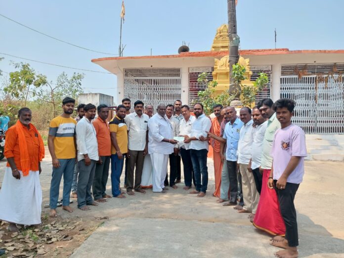 నేటి సాక్షి – ధర్మపురి ప్రతినిధి ( గుండ ప్రశాంత్ గౌడ్ ) : జగిత్యాల జిల్లా గొల్లపల్లి మండల కేంద్రంలో గల శ్రీ కళ్యాణ రామచంద్రస్వామి ఆలయ ధ్వజస్తంభం పున: నిర్మాణం కొరకు దాతలు ముందుకు రావడం జరిగింది. అందులో భాగంగా మండల కాంగ్రెస్ పార్టీ అధ్యక్షులు, మాజీ సర్పంచ్ ముస్కు నిశాంత్ రెడ్డి, దీప్తి దంపతులు 50,116 రూపాయలు మరియు ముస్కు కొండల్ రెడ్డి, విజయలక్ష్మి ,వారి కూతురు దీప్తి రెడ్డి, కుమారుడు రాజా సంతోష్ రెడ్డి లు 50,116 రూపాయలు విరాళంగా అందజేయడం జరిగింది. ఈ సందర్భంగా ఆలయ కమిటీ వారికి వారి యొక్క కుటుంబ సభ్యులందరికీ శ్రీ కళ్యాణ రామచంద్ర స్వామి వారి కృప కటాక్షాలు ఎల్లవేళలా ఉండాలని కోరారు.