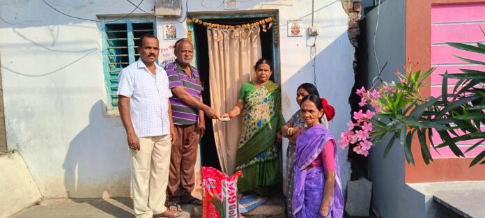 నేటి సాక్షి, హుజురాబాద్ ఆర్.సి (రాఘవుల శ్రీనివాసు): పట్టణ కేంద్రంలోని శిశు మందిర్ దగ్గర గల ప్రతాప్ వెంకటమ్మ- ఆదిరెడ్డి ల రెండవ కుమారుడు ప్రతాపు నాగరాజు, వయసు 40 సంవత్సరాలు జీవనోపాధి నిమిత్తం హైదరాబాదుకు వెళ్లి సుతారిగా పనిచేస్తుండగా రెండు కిడ్నీలు ఫెయిల్ కావడం వల్ల గత శుక్రవారం రోజున మరణించాడు. ఆర్థిక ఇబ్బందుల కారణంగా అంత్యక్రియలు డైరెక్ట్ గా స్మశాన వాటికలో అంత్యక్రియలు చేశారు. ఇప్పుడు 11 రోజుల కార్యక్రమం చేయలేని పరిస్థితిలో ఉండగా ఇంటి దగ్గరలో ఉన్న మునుగంటి రవీందర్ రిటైర్డ్ వర్క్ ఇన్స్పెక్టర్ ఎస్ ఆర్ ఎస్ పి గారు 2000 రూపాయల నగదు మరియు గంగిశెట్టి జగదీశ్వర్ 25 కిలోల రైస్ బ్యాగు అందించారు. గతంలో వీరి కోడలు క్యాన్సర్ తో మరణించగా రవీందర్ మరియు జగదీశ్వర్ గారు పదివేల రూపాయలు నగదు సహాయం చేసినారు. దాతలు ముందుకు వచ్చి తోచిన సహాయం చేయాలని కోరుతున్నారు. ఈ కార్యక్రమంలో వీధిలోని ప్రజలు పాల్గొన్నారు.