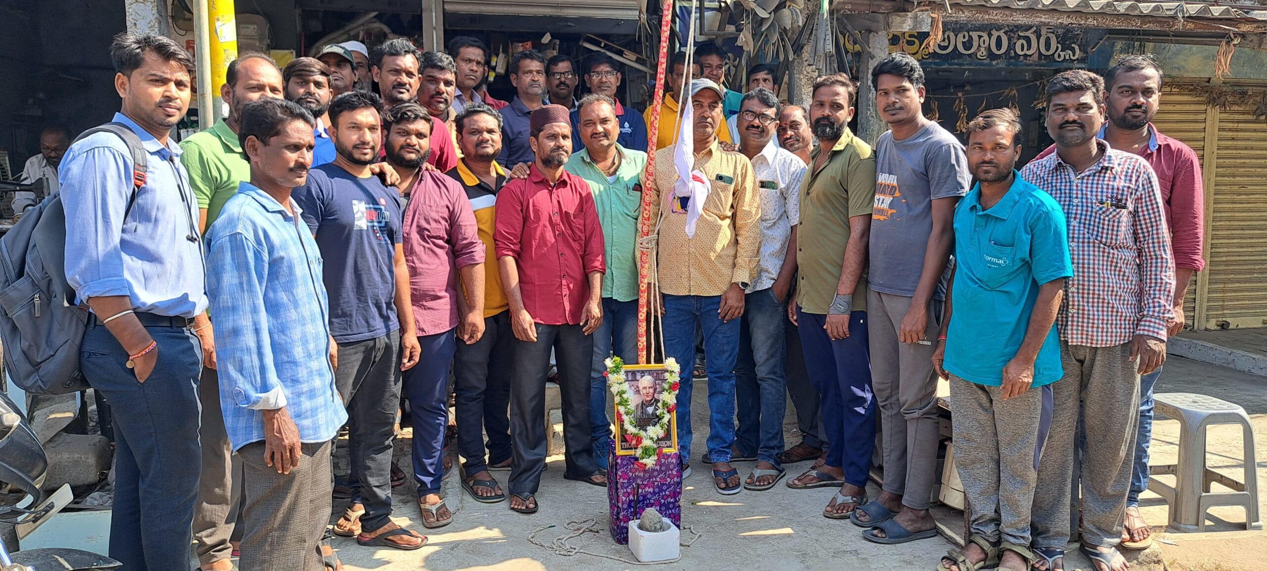 నేటి సాక్షి, మందమర్రి :– ప్రైవేటు ఎలక్ట్రిషన్ వెల్ఫేర్ సొసైటీ ఆధ్వర్యంలో సోమవారం ఎలక్ట్రిషన్ దినోత్సవాన్ని ఘనంగా నిర్వహించారు. పట్టణంలోని మార్కెట్ ప్రాంతంలో ఎలక్ట్రిషన్ దినోత్సవం సందర్భంగా ఎలక్ట్రిషన్ సంఘం సభ్యులు థామస్ అల్వా ఎడిషన్ చిత్రపటానికి పూలమాలలు వేసి నివాళులర్పించి, జెండా ఆవిష్కరించారు. ఈ సందర్భంగా సంఘం సభ్యులు మాట్లాడుతూ, నేడు విద్యుత్ దీపకాంతులతో పగలు రేయి అనే బేధం లేకుండా అన్ని పనులను సులువుగా చేసుకునేందుకు కారణం థామస్ ఆల్వా ఎడిసన్ విశేష కృషి అని తెలిపారు. థామస్ ఆల్వా ఎడిషన్ బల్బుని కనిపెట్టిన జనవరి 27న ఎలక్ట్రిషన్ దినోత్సవంగా పరిగణిస్తూ, ఎలక్ట్రిషన్లు అంతా పండగ లాగా ఘనంగా జరుపుకుంటామని తెలిపారు. ఎలక్ట్రిషన్స్ అందరం ఐకమత్యంతో సంఘం బలోపేతానికి కృషి చేయాలని పిలుపునిచ్చారు. ఈ కార్యక్రమంలో పట్టణ ఎలక్ట్రిషన్లు, ప్లంబర్లు పాల్గొన్నారు.