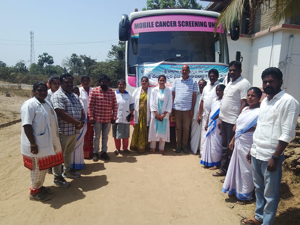 తిరుపతి శ్రీ వెంకటేశ్వర వైద్య విజ్ఞాన సంస్థ(స్విమ్స్) ఆధ్వర్యంలో గురువారం గూడూరు డివిజన్ లోని చింతవరం పిహెచ్ సి పరిధిలో గల ఏరూరు, తిక్కవరం గ్రామాల్లో ఉచిత క్యాన్సర్ స్క్రీనింగ్ పరీక్షలు నిర్వహించారు. రాష్ట్ర ప్రభుత్వ ఆదేశాల మేరకు జిల్లా వైద్య ఆరోగ్య శాఖ సహకారంతో తిరుపతి జిల్లాలో రెండు పింక్ బస్సుల ద్వారా మొబైల్ క్యాన్సర్ స్క్రీనింగ్ వేగవంతంగా జరుగుతోంది. బిపి, షుగరు పరీక్షలతోపాటు పింక్ బస్సులో మహిళలు, పురుషులకు నోటి క్యాన్సర్ పరీక్షలు, మహిళలకు రొమ్ము క్యాన్సర్ నిర్ధారణకు మామోగ్రామ్, గర్భాశయ ముఖద్వార క్యాన్సర్ నిర్ధారణ కోసం పాప్ స్మియర్ పరీక్షలను ఉచితంగా నిర్వహించారు. మహిళలు, పురుషులు విశేషంగా విచ్చేసి క్యాన్సర్ స్క్రీనింగ్ పరీక్షలు చేయించుకున్నారు. మార్చి 7 నుంచి వళ్లిపేడు పిహెచ్ సిలో ఉచిత క్యాన్సర్ స్క్రీనింగ్, మార్చి 7న సిద్దవరం, కొత్తపట్నం, మార్చి 10న వంజివాక, కొక్కుపాడు, మార్చి 11న నెల్లూరుపల్లి కొత్తపాళెం, ఉడతవారిపాళెం. ఈ కార్యక్రమాల్లో పిహెచ్ సి వైద్యాధికారులు డాక్టర్ బి.పాల్ జాన్సన్, డాక్టర్ సుమ, స్విమ్స్ మెడికల్ ఆఫీసర్లు డాక్టర్ చైతన్యభాను, డాక్టర్ హరిత, సర్పంచ్ ఒ.సత్యనారాయణ రెడ్డి, పంచాయతీ కార్యదర్శులు పద్మజ, బి.సుభాషిణి, స్థానిక నాయకులు పి.ప్రవీణ్ రెడ్డి, యు.శీనయ్య, పిహెచ్ ఎన్ కోటేశ్వరమ్మ, సూపర్వైజర్ సురేష్, ఎంఎల్ హెచ్ పిలు బి.మౌనిక, పి.రంగవేణి, ఏఎన్ఎంలు బి.ఉష, బి.ఉష, స్థానిక వైద్య సిబ్బంది, ఆశా వర్కర్లు, సచివాలయ సిబ్బంది పాల్గొన్నారు.