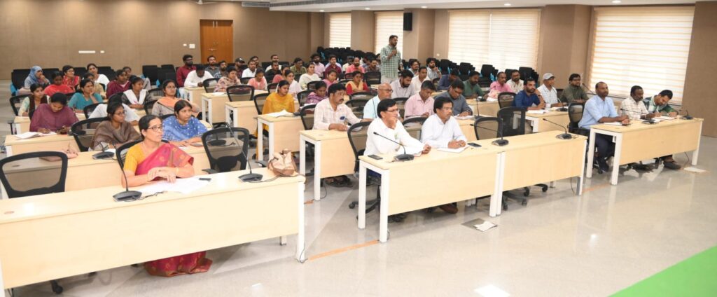నేటి సాక్షి, మంచిర్యాల జిల్లా ప్రతినిధి:- జిల్లాలో రైతులు వ్యవసాయ సాగులో లబ్ధి పొందే విధంగా ప్రత్యామ్నాయ, వాణిజ్య పంటల సాగుపై రైతులకు అవగాహన కల్పించి, ఆ దిశగా రైతులను ప్రోత్సహించాలని జిల్లా కలెక్టర్ కుమార్ దీపక్ అన్నారు. శనివారం జిల్లాలోని నస్పూర్ లో గల సమీకృత జిల్లా కార్యాలయాల భవన సమావేశ మందిరంలో జిల్లా వ్యవసాయ శాఖ అధికారి కల్పన, ఉద్యానవన శాఖ అధికారి అనిత, జిల్లా పశు వైద్య, పశుసంవర్ధక శాఖ అధికారి శంకర్ లతో కలిసి మండల వ్యవసాయ అధికారులు, వ్యవసాయ విస్తరణా అధికారులు, పశువైద్య శాఖ అధికారులు, ఆయిల్ పామ్ కంపెనీ ప్రతినిధులతో సమీక్ష సమావేశం నిర్వహించారు. ఈ సందర్భంగా జిల్లా కలెక్టర్ మాట్లాడుతూ, రైతు సంక్షేమంలో భాగంగా ప్రభుత్వం అనేక కార్యక్రమాలు అమలు చేస్తుందని, ఈ నేపథ్యంలో జిల్లాలో చేపట్టవలసిన వ్యవసాయ పనులపై ప్రత్యేక పర్యవేక్షణ చేయాలని అధికారులకు సూచించారు. సాధారణ పంటలు మాత్రమే కాకుండా ప్రత్యామ్నాయంగా వాణిజ్య పంటలు, కూరగాయల సాగుపై రైతులను ప్రోత్సహించాలని తెలిపారు. పాడి రైతులు పౌల్ట్రీ, గొర్రెల పెంపకం, చేపల పెంపకం పై దృష్టి సారించాలని తెలిపారు. అధిక ఆదాయాన్ని అందించే ఆయిల్ పామ్, పండ్ల పెంపకంపై ప్రభుత్వం ప్రత్యేక అవకాశాలు కల్పిస్తుందని, వ్యవసాయ అధికారులు ప్రభుత్వ పథకాలను రైతులకు అవగాహన కల్పించాలని తెలిపారు. జిల్లాలో 3 వేల ఎకరాల ఆయిల్ పామ్ తోటల సాగు లక్ష్యాన్ని పూర్తి చేసే విధంగా అధికారులు దృష్టి సారించాలని తెలిపారు. ప్రభుత్వ పథకాలలో రైతుల లబ్ధి కొరకు రాయితీ, కూలి ధరలు, ఆయిల్ ఫామ్ రిజిస్ట్రేషన్ ప్రక్రియ అంశాలపై వివరించారు. 5 ఎకరాల కంటే తక్కువ భూమి విస్తీర్ణం గల రైతులకు ప్రభుత్వ పథకాల ద్వారా లాభ పడేలా వివరించాలని, ప్రతి రోజు 5 నుండి 10 మంది రైతులకు లాభదాయక మార్గాలపై అవగాహన కల్పించాలని తెలిపారు. పోడు భూములు, అటవీ భూములు, గిరిజన ప్రాంతాల్లో ప్రభుత్వ పథకాల క్రింద వెదురు మొక్కలు నాటడం జరుగుతుందని, సెరికల్చర్, అడవి ప్రాంతాలలో వెదురు చెట్ల పెంపకంపై ప్రత్యేక చర్యలు తీసుకోవాలని తెలిపారు. కాలానుగుణంగా పంటల సాగు చేసేలా రైతులకు అవగాహన కల్పించాలని తెలిపారు. మండల వ్యవసాయ అధికారులు, వ్యవసాయ విస్తరణ అధికారులు ఆధార్ సీడింగ్, ఈ- కెవైసి పనులు త్వరితగతిన పూర్తి చేయాలని, ప్రతిరోజు క్షేత్రస్థాయిలో పర్యటిస్తూ రైతు సమస్యలను తెలుసుకోవాలని, పంటల సాగులో మెళకువలు, పంటలపై అడవి పందుల దాడి నియంత్రణ అంశాలపై రైతులతో చర్చించి తగు చర్యలు తీసుకోవాలని తెలిపారు. ఈ కార్యక్రమంలో సంబంధిత అధికారులు తదితరులు పాల్గొన్నారు.