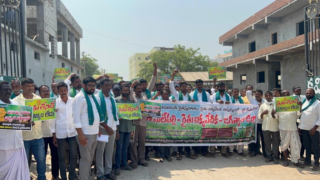 నేటి సాక్షి, మెట్ పల్లి రూరల్ : ఆరుగలం శ్రమించిన పసుపు పంటకు మద్దతూ ధర కావాలంటూ రైతులు మంగళవారం మెట్ పల్లి పాత బస్ స్టాండ్ వద్ద బైటాయించి నిరసనకు దిగారు.పచ్చ బంగారంలా బావించే పసుపు ధర రోజురోజుకి దిగజారుతూ పండించే రైతులకు పెట్టుబడులు రానటువంటి పరిస్థితుల్లో ఎన్నో ఏండ్లుగా పసుపు బోర్డ్, మద్దతు ధర కోసం పోరాటం చేస్తున్న రైతులు పసుపు బోర్డ్ సాధించుకున్న బహిరంగ మార్కెట్ లో దిగజారుతున్న ధరలతో దిగాలుగా ఉన్న రైతు మరోసారి రోడ్డెక్కి నిరసన తెలిపినటువంటి పరిస్థితినెలకొంది. పసుపుకి పదిహేను వేల మద్దతు ధర కలిపించాలని కోరుతూ కేంద్ర, రాష్ట్ర ప్రభుత్వాలు సమన్వయంతో దిగివచ్చి రైతులను ఆదుకోవాలని రైతు ఐక్య వేదిక ఆధ్వర్యంలో మెట్ పెల్లి మార్కెట్ యార్డ్ నుండి వేలాది మంది రైతులు ర్యాలీ గా పాత బస్టాండ్ చౌరస్తా చేరుకొని నిరసన తెలపడం జరిగింది. ఈసందర్భంగా పసుపు రైతుల కోసం పోరాటం చేసిన కీశే ముత్యాల మనోహర్ రెడ్డి మరణించగా వారి ఆత్మకు శాంతి చేకూరాలని ఒక నిమిషం మౌనం పాటించారు. అనంతరం రైతు నాయకులు మాట్లాడుతూ రైతుల పేరు చెప్పుకుని ఓట్లు వేయించుకొని ప్రభుత్వాల గద్దెనెక్కి మావి రైతుల ప్రభుత్వాలు అని చెప్పుకుంటూ రైతులు పండించే పంటలకు మద్దతు ధరలు దక్కనప్పుడు మొకం చాటిస్తున్నారని అన్నారు. ప్రస్తుతం పసుపుకు మద్దతు ధర సంగతి దేవుడెరుగు, మార్కెట్ లో పసుపు కొనడానికి వ్యాపారులు ముందుకు రాక నిజమాబాద్ వంటి మార్కెట్ లలో రైతులు రోడ్డెక్కిన పరిస్థితి ఉంది. ఇలాంటి పరిస్థితుల్లో పసుపు రైతులని ఆదుకోవడానికి కేంద్ర ప్రభుత్వం పసుపు పంటను మద్దతు ధరల పంటల జాబితా లో చేర్చి, పసుపుకి సైతం పదిహేను వేలు మద్దతు ధర ప్రకటించడం లేదా మద్దతు ధర లేని దృష్ట్యా కేంద్ర ప్రభుత్వం మార్కెట్ ఇంటర్వేన్షన్ పథకం కింద రాష్ట్ర ప్రభుత్వం కొనుగోలుకు అనుమతి ఇచ్చి, రాష్ట్ర ప్రభుత్వం మార్క్ ఫెడ్ ఆధ్వర్యంలో కొనుగోలు కేంద్రాలు ఏర్పాటు చేసి పసుపు పంట కొనుగోలు చేసి రైతులను ఆదుకోవాలని పేర్కొన్నారు. ఈ కార్యక్రమం లో రైతు ఐక్య వేదిక రాష్ట్ర నాయకులు పన్నాల తిరుపతి రెడ్డి, రైతు ఐక్య వేదిక జిల్లా అధ్యక్షులు నల్ల రమేష్ రెడ్డి, ఉపాధ్యక్షులు మిట్టపల్లి తిరుపతి రెడ్డి,కర్నె రాజేందర్,రైతు సంఘాల నాయకులు మారు మురళీధర్ రెడ్డి,బందెల మల్లన్న, కొట్టాల మోహన్ రెడ్డి, వేముల కర్ణాకర్ రెడ్డి,చెరుకు ఉత్పత్తి దారుల సంఘం అధ్యక్షులు మామిడి నారాయణ రెడ్డి, ఎలిషా పాపన్న,రైతు సంఘాల పెద్దలు, అధిక సంఖ్యలో రైతులు పాల్గొన్నారు.