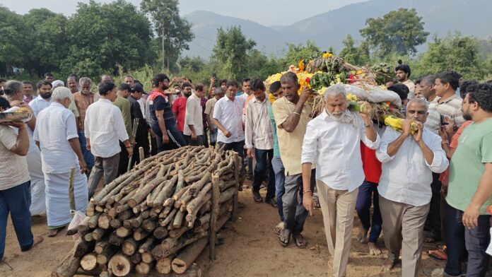 - మృతదేహంపై పార్టీ జెండా కప్పి పూలమాలవేసి నివాళులర్పించిన పులివర్తి నాని కుటుంబం