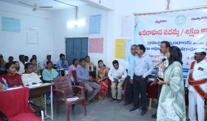 రాష్ట్ర ప్రభుత్వం అమలు చేస్తున్న సంక్షేమ పథకాలు అమలు చేసేందుకు నిర్వహించే గ్రామ సభలు జవాబు దారీతనంగా ఉండాలని హనుమకొండ జిల్లా కలెక్టర్ పి.ప్రావిణ్య అధికారులను ఆదేశించారు. గురువారం ఆత్మకూరు మండల కేంద్రంలోని జిల్లా ప్రజా పరిషత్ పాఠశాలలో మండల స్థాయి ఆఫీసర్స్ (పంచాయతీ సెక్రెటరీలు, ఫీల్డ్ అసిస్టెంట్స్, టెక్నికల్ అసిస్టెంట్ తో నిర్వహించిన అవగాహన సదస్సు, శిక్షణ కార్యక్రమం, గ్రామస్థాయి బృందాలు మరియు క్లస్టర్ స్థాయి అవగాహన సదస్సును నిర్వహించారు. ఈ కార్యక్రమంలో జిల్లా కలెక్టర్ ప్రావిణ్య మాట్లాడుతూ ఈనెల 21 నుంచి 25 వరకు నిర్వహించే గ్రామసభలు ప్రభుత్వం అమలు చేయనున్న రైతు భరోసా, కొత్త రేషన్ కార్డులు, ఇందిరమ్మ ఆత్మీయ భరోసా, ఇందిరమ్మ ఇండ్లు, ఇతర అభివృద్ధి కార్యక్రమాలపై నిర్దేశించిన భూములను, మైనింగ్ భూములను వివరాలు ఖచ్చితంగా సేకరించాలన్నారు. అదేవిధంగా ప్రభుత్వం కొనుగోలు చేసిన భూముల వివరాలు సూచించాలని అధికారులకు కలెక్టర్ సూచించారు. ప్రభుత్వ ఉత్తర్వులను అనుసరించి సేకరించిన వివరాలను గ్రామ పంచాయతీ నోటీసు బోర్డుపై వివరాలు ఉంచి అభ్యంతరాలను స్వీకరించాలని, సేకరించిన వివరాలను మండల స్థాయి అధికారులకు తెలియజేయాలన్నారులే..అవుట్ మినహా, పడావున్న భూములను కూడా రైతు భరోసా పథకానికి అర్హులుగా గుర్తించాలని కలెక్టర్ తెలిపారు. అదేవిధంగా ప్రభుత్వం నిర్దేశించిన విధంగా ఆదాయ వివరాలను సేకరించి అర్హులైన రేషన్ కార్డుల జాబితాలు లబ్ధిదారులు మధ్య దళారులను ఆశ్రయించకుండా సరియైన రీతిలో అర్హులైన వారి జాబితాలు గ్రామ సభలో ప్రజలకు నివేదించాలని కలెక్టర్ తెలిపారు. గ్రామ సభలకు ముందే ఒకరోజు ప్రజలను వచ్చి అభ్యంతరాలను సేకరించి, ఉన్నతాధికారుల సలహా మేరకు తుది జాబితాను తయారుచేసి గ్రామ సభలలో జాబితాను ప్రదర్శించాలని కలెక్టర్ తెలిపారు. గ్రామ సభలలో స్థానిక లబ్ధిదారుల తో పాటు గ్రామస్థాయి ఇందిరమ్మ కమిటీలను కూడా ఆహ్వానించాలని కలెక్టర్ సూచించారు. పెండింగ్ సర్వేలు ఉన్న యెడల రేపటి లోగా పూర్తి చేయాలని సేకరించిన డేటాను పూర్తి స్థాయిలో భద్రంగా ఉంచి కంప్యూటర్ రీజన్ చేయాలని కలెక్టర్ తెలిపారు. గ్రామస్థాయి కమిటీలు, సబ్ కమిటీలు వారికి నిర్దేశించిన విధంగా పూర్తి స్థాయిలో సమర్థవంతంగా పనిచేయాలని తెలిపారు. ఈ సమావేశంలో ఆర్డీవో కె. నారాయణ, తహసిల్దార్ జగన్మోహన్ రెడ్డి, మండల అభివృద్ధి అధికారి శ్రీనివాస్ రెడ్డి, ఏవో శ్రీనివాస్, ఎం పి ఓ. విమల, గ్రామపంచాయతీ కార్యదర్శులు, స్పెషల్ అధికారులు ఏఈఓ లు, ఏఈవోలు, ఆర్ ఐ లు, తదితరులు పాల్గొన్నారు.