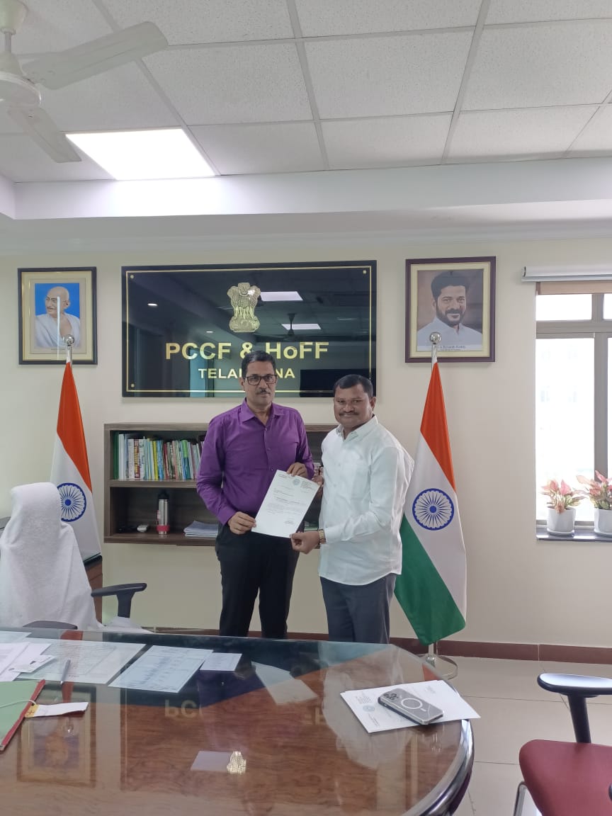 తెలంగాణ రాష్ట్ర ఫారెస్ట్ డిపార్ట్మెంట్ ప్రధానకార్యాలయంలో PCCF ప్రిన్సిపల్ సెక్రటరీ యమ్. దోబ్రీయల్ గారిని మర్యాదపూర్వకంగా కలిసి ఇటీవలే అశ్వారావుపేటను మున్సిపాలిటీగా చేస్తూ రాష్ట్రప్రభుత్వం జీవో జారీ చేసిన సందర్భంలో మండలానికి సెంట్రల్ ఫారెస్ట్ ఎకోపార్క్ మంజూరు చేసి నిర్మాణం కొరకు నిధులు మంజూరు చేయాలని కోరుతూ వినతిపత్రం అందజేస్తున్న ఎమ్మెల్యే జారె ఆదినారాయణ.