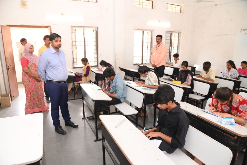 నేటి సాక్షి, మందమర్రి:- ఇంటర్మీడియట్ వార్షిక పరీక్షలను ప్రశాంత వాతావరణంలో సజావుగా నిర్వహించాలని జిల్లా కలెక్టర్ కుమార్ దీపక్ అన్నారు. మంగళవారం మండల కేంద్రంలోని ఆదర్శ పాఠశాల, ప్రభుత్వ జూనియర్ కళాశాలల్లో ఏర్పాటు చేసిన ఇంటర్ పరీక్షా కేంద్రాలను ఆకస్మికంగా సందర్శించి పరీక్షా తీరును పరిశీలించారు. ఈ సందర్భంగా జిల్లా కలెక్టర్ మాట్లాడుతూ, జిల్లాలో ఈ నెల 25వ తేదీ వరకు జరగనున్న ఇంటర్మీడియట్ పరీక్షల నిర్వహణ కొరకు 23 పరీక్షా కేంద్రాలు ఏర్పాటు చేయడం జరిగిందని, పరీక్ష కేంద్రాలలో విద్యార్థులకు సరిపడా ఫర్నిచర్, త్రాగునీరు, ఫ్యాన్లు, వెలుతురు ఉండేలా ఏర్పాట్లు చేయడం జరిగిందని తెలిపారు. విద్యార్థులు పరీక్ష కేంద్రంలోనికి వెళ్ళే సమయంలో తనిఖీలు నిర్వహించాలని, పరీక్షా కేంద్రంలోనికి మొబైల్, ఇతర ఎలాంటి ఎలక్ట్రానిక్ పరికరాలను అనుమతించకూడదని, తనిఖీ ప్రక్రియ సక్రమంగా నిర్వహించాలని తెలిపారు. ప్రతి పరీక్ష కేంద్రంలో అత్యవసర వైద్య సేవలు నిమిత్తం వైద్య సిబ్బందిని నియమించి అవసరమైన మందులు, ఓఆర్ఎస్ ప్యాకెట్లు అందుబాటులో ఉంచడం జరిగిందని, నిరంతర విద్యుత్ సరఫరా, విద్యార్థులు సకాలంలో పరీక్షా కేంద్రాలకు చేరుకునే విధంగా ఆయా రూట్లలో సమయానుసారంగా బస్సులు నడిపిస్తున్నామని తెలిపారు. ప్రభుత్వ ఐటిఐ అడ్వాన్స్డ్ టెక్నాలజీ సెంటర్ (ఎటిసి) పనులను సందర్శించి త్వరితగతిన పూర్తి చేసే విధంగా చర్యలు తీసుకోవాలని తెలిపారు. తహశిల్దార్ కార్యాలయంలోని రిజిస్టర్లను పరిశీలించి వివిధ ధృవపత్రాల కొరకు అందిన దరఖాస్తులను నిర్ణీత గడువులోగా నిబంధనలకు లోబడి జారీ చేయాలని తెలిపారు. నిరుపేదలకు ప్రభుత్వం అందిస్తున్న రెండు పడక గదుల ఇండ్ల పథకంలో ఎంపికైన అర్హత గల లబ్దిదారులకు తహశిల్దార్ సతీష్ తో కలిసి పట్టాలు పంపిణీ చేశారు. మండల కేంద్రంలోని ప్రాథమిక ఆరోగ్య కేంద్రాన్ని సందర్శించి వార్డులు, ల్యాబ్, మందుల నిల్వలు, రిజిస్టర్లు, పరిసరాలను పరిశీలించారు. ఆసుపత్రికి వచ్చే ప్రజలకు మెరుగైన వైద్య సేవలు అందించాలని, అవసరమైన మందులను అందుబాటులో ఉంచుకోవాలని, వైద్యులు, సిబ్బంది విధుల పట్ల సమయపాలన పాటిస్తూ ఎల్లప్పుడూ అందుబాటులో ఉంటూ ప్రజలకు సేవలు అందించాలని తెలిపారు. ఆసుపత్రిలో పారిశుద్ధ్య నిర్వహణ పకడ్బంధీగా చేపట్టాలని, వేసవిలో వడదెబ్బ బారిన పడకుండా పాటించవలసిన జాగ్రత్తలను ప్రజలకు వివరించాలని తెలిపారు. అనంతరం సారంగంపల్లి గ్రామంలోని నర్సరీని సందర్శించి మొక్కల సంరక్షణ చర్యలను పరిశీలించారు. ఎండా కాలం కావడంతో మొక్కలకు సకాలంలో నీటిని అందించాలని, విత్తన అభివృద్ధి చర్యలు సక్రమంగా చేపట్టాలని, మొక్కల సంరక్షణపై ప్రత్యేక చర్యలు తీసుకోవాలని, గ్రీన్ మ్యాట్ ఏర్పాటు చేసి 