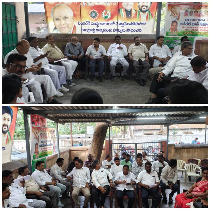 నేటి సాక్షి గోదావరిఖని (రమేష్) : గోదావరిఖని జనక్ భవన్లో యూనియన్ సెక్రటరీ జనరల్ జనక్ ప్రసాద్.అధ్యక్షతన ఘనంగా జరిగింది. సమావేశానికి మూడు ఏరియాల నుండి సెంట్రల్ నాయకులు ,వైస్ ప్రెసిడెంట్లు హాజరయ్యారు. సమావేశంలో ప్రధాన రీజియన్లోని అన్ని ఏరియా పిట్ కమిటీల నిర్మాణం, బలోపేతం. యూనియన్ బలోపేతం కోసం గనుల వద్ద బాయి బాట నిర్వహించి కార్మికులకు బొగ్గు గనుల వేలం గురించి అవగాహన కల్పించడం. సింగరేణి రణభేరి యాత్ర, సింగరేణి తల్లి విగ్రహ ప్రతిష్ఠాపనపై చర్చ యూనియన్ వికేంద్రీకరణపై దృష్టి పెట్టడం.