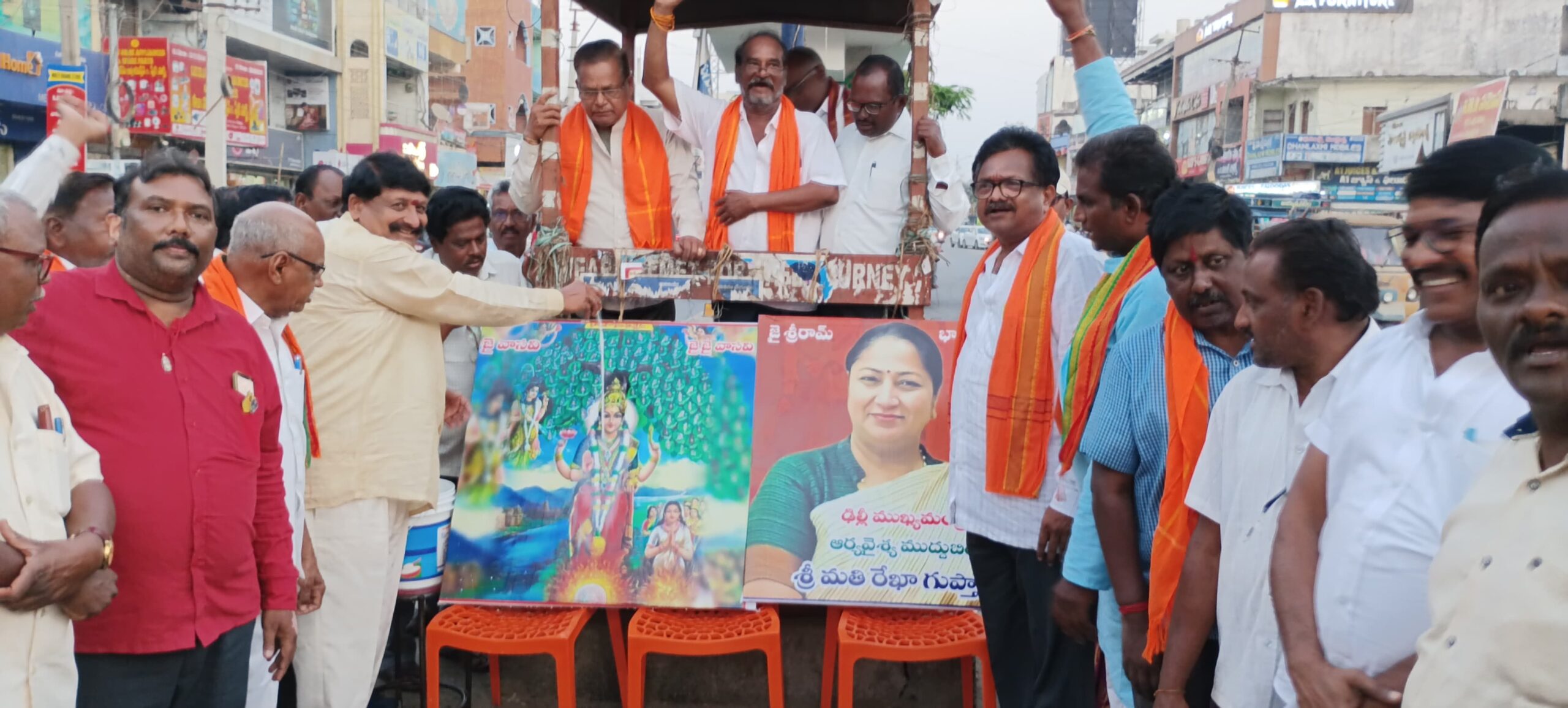 నేటి సాక్షి, కోదాడ ప్రతినిధి, సతీష్ : దేశ రాజధాని ఢిల్లీకి ఆర్యవైశ్య సంఘానికి చెందిన మహిళ రేఖా గుప్తా ముఖ్యమంత్రి కావడం నిజంగా అభినందనీయమని, కోదాడ పట్టణ ఆర్య వైశ్య సంఘం నాయకులు హర్షం వ్యక్తం చేశారు. ఢిల్లీ పీఠానికి మహిళ ముఖ్యమంత్రిగా ప్రమాణస్వీకారం చేసిన సందర్భంగా కోదాడ పట్టణంలో వంగవీటి శ్రీనివాసరావు, ఓరుగంటి పురుషోత్తం, జల్లా జనార్ధన్ ఆధ్వర్యంలోఆర్యవైశ్యుల కులదేవత కన్యకా పరమేశ్వరి వాసవిదేవి అమ్మవారి చిత్రపటానికి పాలభిషేకం నిర్వహించారు. అనంతరం బాణాసంచా కాల్చి స్వీట్లు పంపిణీ చేసారు. ఈ కార్యక్రమానికి ముఖ్యఅతిథిగా ఆర్యవైశ్య సంఘం జిల్లా అధ్యక్షులు వెంపటి వెంకటేశ్వరరావు కార్యక్రమంలో పాల్గొన్నారు. అనంతరం ఆర్యవైశ్య సంఘం నాయకులు మాట్లాడుతూ…మహిళలకు సమచిత స్థానం కల్పించడంలో బిజెపి పార్టీ ముందుంటుందన్నారు. హిందూ భావజాలాన్ని, సనాతన ధర్మాన్ని పాటించే ఏకైక పార్టీ బిజెపి మాత్రమే అన్నారు. గత కొంతకాలంగా ఢిల్లీ అవినీతి రాజకీయాలతో అభివృద్ధి లేక కుంటూ పడిందని దేశ రాజధాని అభివృద్ధి నోచుకోకపోతే ప్రపంచవ్యాప్తంగా ఆ ప్రభావం పడుతుందని, ఢిల్లీ ప్రజలు మేల్కొని బిజెపి పార్టీకి ఓటు వేసి అభివృద్ధి చేసే బిజెపికి అవకాశం కల్పించారని పేర్కొన్నారు. తెలంగాణలో కూడా బిజెపి విజయకేతనం ఎగరవేయబోతుందని, త్వరలో జరిగే స్థానిక సంస్థలతోపాటు భవిష్యత్తులో జరిగే సార్వత్రిక ఎన్నికలలో కూడా బిజెపి పార్టీ సత్తా ఏంటో చాటుతామన్నారు. త్వరలో జరగబోయే మున్సిపాలిటీ ఎన్నికలలో కూడా కోదాడ పట్టణంలో పలు వార్డులలో ఆర్యవైశ్య సంఘం సభ్యులకు అవకాశం కల్పించాలని తప్పనిసరిగా గెలిపించి చూపిస్తామన్నారు. ఈ కార్యక్రమంలో రామ్మూర్తి నాగేశ్వరరావు సతీష్ సుధాకర్ కుక్కడపు బాబు, చల్లా శేఖర్, చల్లా వెంకటేశ్వర్లు, వెంపటి రంగారావు, ఓరుగంటి కిట్టు, రవి ,హనుమంతరావు, వినాయకరావు, అప్పారావు, ఈశ్వరరావు, పవన్ తదితరులు పాల్గొన్నారు.