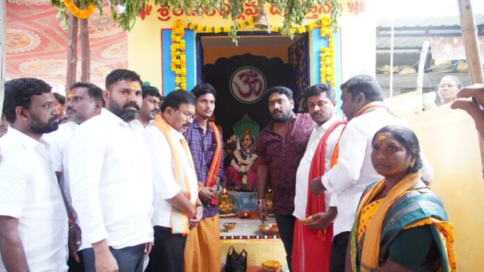 నేటి సాక్షి, బెజ్జంకి: బెజ్జంకి మండల కేంద్రంలోని ఎస్సి కాలనీ లో గల శ్రీ రేణుక ఎల్లమ్మ తల్లిని మానకొండూరు శాసనసభ్యులు డా. కవ్వంపల్లి సత్యనారాయణ దర్శించుకుని ప్రత్యేక పూజలు చేశారు. ఆ తల్లి దీవెనలు కాలనీ వాసులకు ఉండాలని, ప్రజలు ఆయురారోగ్యాలతో ఉంచాలని కోరుకున్నారు.కాలనీ వాసులు ఎమ్మెల్యే ని శాలువతో సన్మానించారు. వీరితో మార్కెట్ కమిటీ చైర్మన్ పులి క్రిష్ణ, బ్లాక్ కాంగ్రెస్ అధ్యక్షులు మాజీ ఎంపీపీ ఒగ్గు దామోదర్, ఏఎంసి వైస్ చైర్మన్ చిలివేరు శ్రీనివాస్ రెడ్డి, దేవస్థానం చైర్మన్ జెల్ల ప్రభాకర్, ఏఐఎస్ఎఫ్ రాష్ట్ర కార్యదర్శి బోనగిరి రూపేష్, సీపీఐ మండల కార్యదర్శి బోనగిరి రూపేష్, మాజీ ఏఎంసి చైర్మన్ అక్కరవేణి పోచయ్య, బ్లాక్ కాంగ్రెస్ ఉపాధ్యక్షులు లింగాల శ్రీనివాస్, శానాగొండ శ్రావణ్, శానాగొండ శరత్, నాయకులు లింగాల లక్ష్మణ్, జేరిపోతుల మధు, బోనగం రమేష్, బోనగిరి ఎల్లయ్య, బోనగిరి శేషు, జుట్టు బాబు తదితరులు పాల్గొన్నారు.