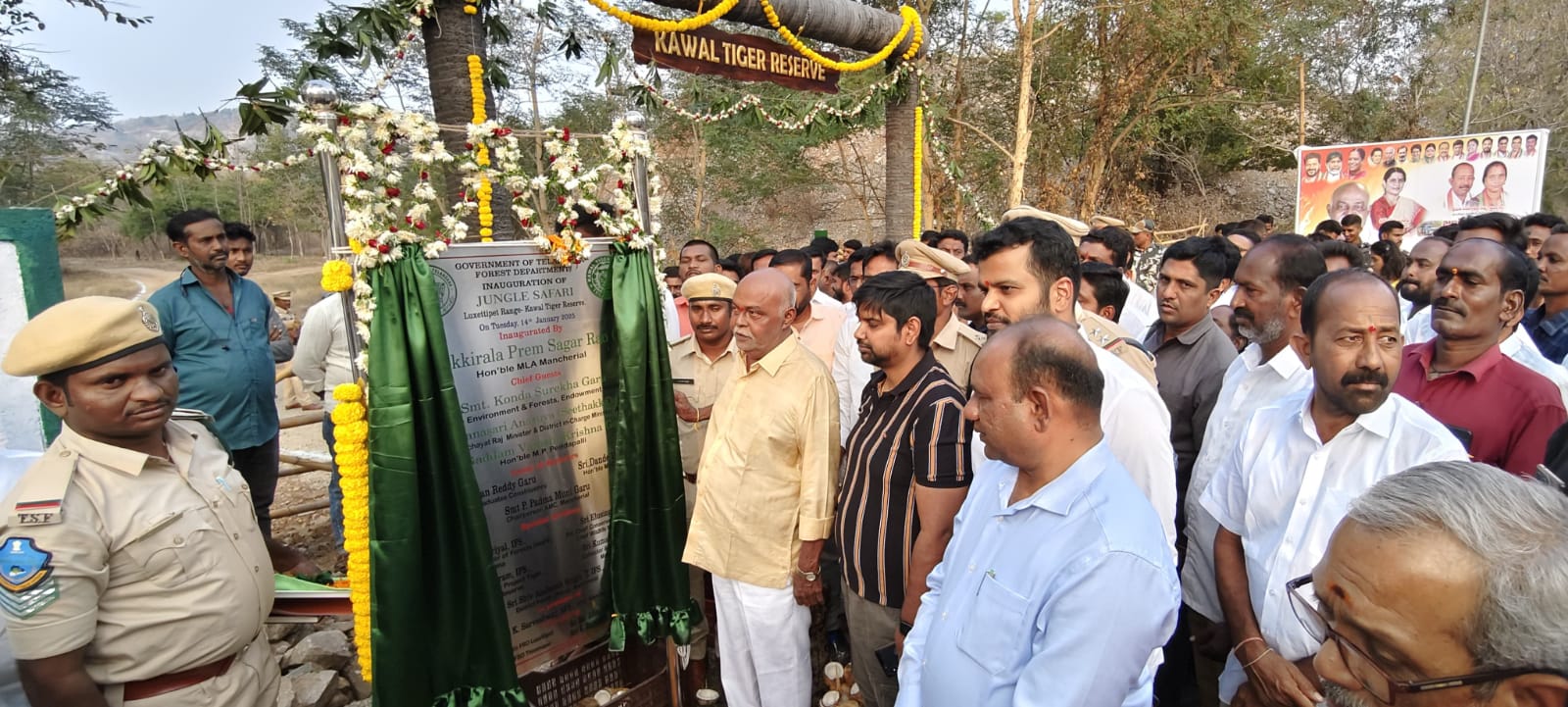 పర్యావరణ పరిరక్షణతో పాటు పర్యాటకులకు ఆహ్లాదకరమైన వాతావరణం కల్పించడంలో భాగంగా జిల్లా అటవీ శాఖ ఆధ్వర్యంలో జంగల్ సఫారీ ఏర్పాటు చేయడం జరిగిందని జిల్లా కలెక్టర్ కుమార్ దీపక్ అన్నారు. జిల్లాలోని లక్షెట్టిపేట రేంజ్-కవ్వాల్ టైగర్ రిజర్వ్ పరిధిలోని హాజీపూర్ మండలం ర్యాలీ గడ్ పూర్ గ్రామ సమీపంలో ఏర్పాటు చేసిన జంగల్ సఫారీ కార్యక్రమాన్ని జిల్లా అటవీ అధికారి శివ్ ఆశిష్ సింగ్, మంచిర్యాల నియోజకవర్గ శాసనసభ్యులు కొక్కిరాల ప్రేమ్ సాగర్ రావు లతో కలిసి ప్రారంభించారు. ఈ సందర్భంగా జిల్లా కలెక్టర్ మాట్లాడుతూ, జిల్లాలో పర్యాటక రంగ అభివృద్ధి, పర్యావరణ పరిరక్షణ, ప్రజల సౌకర్యం కొరకు జంగల్ సఫారీ కార్యక్రమాన్ని ఏర్పాటు చేయడం జరిగిందని తెలిపారు. దేశంలోని వన్యప్రాణుల సంరక్షణ కేంద్రాలలో పులులు, ఇతర వన్యప్రాణుల సంరక్షణ కొరకు ప్రభుత్వం ప్రత్యేక చర్యలు తీసుకుంటుందని, ఇందులో భాగంగా జిల్లాలో అటవీ శాఖ ఆధ్వర్యంలో వన్యప్రాణుల సంరక్షణ కొరకు ప్రత్యేకంగా పర్యవేక్షణ చర్యలు తీసుకోవడం జరుగుతుందని తెలిపారు. ఈ కార్యక్రమంలో సంబంధిత అధికారులు, డి.సి.సి. అధ్యక్షురాలు కొక్కిరాల సురేఖ, ప్రజా ప్రతినిధులు తదితరులు పాల్గొన్నారు.