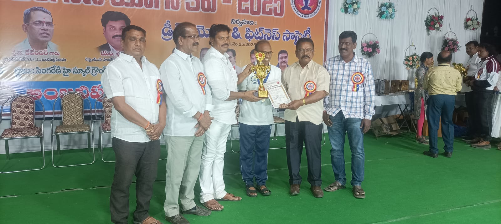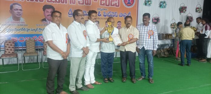 నేటి సాక్షి, మందమర్రి:- పట్టణంలోని సింగరేణి ఉన్నత పాఠశాల మైదానంలో డ్రీమ్ యోగ ఫిట్నెస్ సొసైటీ నిర్వహించిన తెలంగాణ స్థాయి యోగా పోటీలలో పట్టణానికి చెందిన కొంపల్లి రమేష్ కుమార్ నాలుగు విభాగాల్లో ఫస్ట్ ప్లేస్ సాధించారు. కొంపల్లి రమేష్ యోగాపుత్ర అవార్డుతో పాటు యోగ ఉపన్యాస పోటీలలో మొదటి బహుమతి, 56 సంవత్సరాల నుండి 60 సంవత్సరాల కేటగిరిలో ప్రధమ బహుమతి, 30 సంవత్సరాలు దాటిన పురుషుల విభాగంలో ఛాంపియన్ షిప్ సాధించారు. ఈ సందర్భంగా రమేష్ ను పలువురు అభినందించారు. ఈ సందర్భంగా రమేష్ కొంపెల్లి మాట్లాడుతూ, ఆరోగ్య వంతుడైన వ్యక్తి జీవితంలో ఏదైనా సాధిస్తాడని ఆరోగ్యానికి మించిన సంపద సృష్టిలో ఏదీ లేదని యోగ చేయడం ద్వారా శారీరక మానసిక దృఢత్వం ఏర్పడుతుందని కాబట్టి అందరు యోగా చేసి ఆరోగ్యంగా ఉండాలని తెలిపారు.