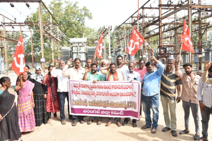 విద్యుత్ రంగ ప్రయివేటికరణను వ్యతిరేకిస్తూ కరీమాబాద్ సబ్ స్టేషన్ వద్ద సీఐటీయూ వరంగల్ జిల్లా కమిటీ ఆధ్వర్యంలో ధర్నా కార్యక్రమం చేపట్టడం జరిగింది. ఈ కార్యక్రమంలో ముఖ్య అతిథిగా సీఐటీయూ జిల్లా అధ్యక్ష కార్యదర్శి లు ముక్కెర రామస్వామి మాలోత్ సాగర్ పాల్గొని మాట్లాడుతూ కేంద్రంలో మూడవసారి ఏర్పడిన మోడీ ప్రభుత్వం గతం కన్నా మరింత దూకుడుగా ప్రజా వ్యతిరేక వినాశకర విధానాలను అవలంబిస్తున్నది. విద్యుత్ రంగంపై బిజెపి ప్రభుత్వం దాడి చేస్తుంది. ఈ మద్య కాలంలో చండీగఢ్, ఉత్తరప్రదేశ్, తెలంగాణ రాష్ట్రాలలో డిస్కంలనూ ప్రవేట్ చేసే ప్రయత్నాలు జరుగుతున్నాయి. రాష్ట్రాలలో దొడ్డిదారిన స్మార్ట్ మీటర్లు నెలకొల్పడం ద్వారా విద్యుత్ ప్రయివేట్ చేసే ప్రయత్నాలు ముమ్మరం చేశారు. పవర్ గ్రీడ్ సబ్ స్టేషన్ లను గంప్ప గుత్తాగా ఔట్ సోర్సింగ్ చేయమని ఆదేశించారు. స్మార్ట్ మీటర్లు అమలు సహా అన్ని కాంట్రాక్టులు ఆధానికే కట్టబెట్టారు. విద్యుత్ రంగాన్ని ప్రయివేట్ చేయడానికి మోడీ ప్రభుత్వం చేస్తున్న ప్రయత్నాలకు వ్యతిరేకంగా దేశవ్యాప్తంగా విద్యుత్ రంగ కార్మికులు వీరోచిత పోరాటం చేస్తున్నారు. నేడు చండీగఢ్, ఉత్తరప్రదేశ్ లలో పోరాటం లో కార్మికులు అగ్రభాగాన నిలుస్తున్నారు. ప్రవేటికరిస్తే ప్రజాలపై, కార్మికులకు చాలా నష్టాలు వాటిలే ప్రమాదం ఉందన్నారు. కావున మోడీ ప్రభుత్వ విధానాలను ప్రజలు ముక్త కంఠంతో వ్యతి రేకించాలని పిలునిచ్చారు. ఈ కార్యక్రమంలో ముఖ్య అతిథిగా సిఐటియు కార్యదర్శి ముక్కెర రామస్వామి, సిఐటియు జిల్లా కార్యదర్శి ఎండి మహబూబ్ పాషా గణిపాక ఓదెలు, ఎం.డి.ఇస్మాయిల్ రతన్ గౌడ్, రాఘవరెడ్డి, జుబేదా జహేదా, మాదాసు దివ్య, యాకమ్మ, ఎండి యాకు పాషా మన్సూర్, యాకమ్మ, సూరయ్య, జహీదా, స్వరూప,పెంటయ్య, విమల, సబ్ స్టేషన్ కార్మికులు డి కిష్టయ్య రహమత్ భద్రయ్య రాము సాంబయ్య నాగరాజు షరీఫ్ రంజిత్ తదితరులు పాల్గొన్నారు…