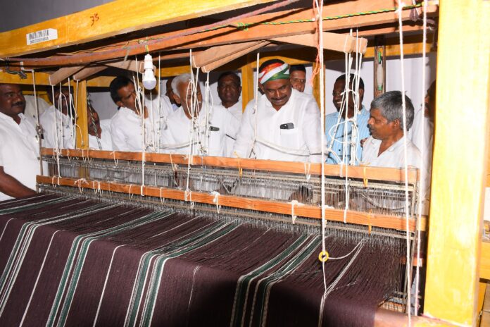 నేటి సాక్షి, ప్రతినిధి వనపర్తి జిల్లా : పెద్దమందడి మండలం వెల్టూరు గ్రామంలోని ఉన్ని పారిశ్రామిక సహకార సంఘాన్ని పూర్తిస్థాయిలో బలోపేతం చేసుకుందామని వనపర్తి శాసనసభ్యులు తూడి మేఘారెడ్డి పేర్కొన్నారు.శుక్రవారం ఆయన వెల్టూర్ చేనేత కాలనీలోని ఉన్ని పారిశ్రామిక సహకార సంఘాన్ని సందర్శించారు. ఈ సందర్భంగా సంఘ భవనంలో రగ్గులను తయారుచేస్తున్న చేనేత కార్మికులతో ఎమ్మెల్యే మాట్లాడారు. ఈ పారిశ్రామిక సహకార సంఘంలో తయారైన రగ్గులకు తుది మెరుగులు ఇక్కడ ఇవ్వలేకపోతున్నామని దానికోసం హర్యానా వెళ్లవలసి వస్తుందని సంఘం చైర్మన్ వెంకటేష్ ఎమ్మెల్యే దృష్టికి తీసుకువచ్చారు. అందుకు సనుకూలంగా స్పందించిన ఎమ్మెల్యే ఫినిషింగ్ యూనిట్ ఏర్పాటు కోసం నివేదికలు తయారు చేయాలని ముఖ్యమంత్రి రేవంత్ రెడ్డి దృష్టికి తీసుకువెళ్లి యూనిట్ మంజూరి కోసం ప్రయత్నం చేస్తానని ఆయన పేర్కొన్నారు. కార్మికుల యోగక్షేమాలను ఆయన అడిగి తెలుసుకున్నారు. కార్యక్రమంలో డి సి సి బి జిల్లా అధ్యక్షులు విష్ణువర్ధన్ రెడ్డి, వనపర్తి వ్యవసాయ మార్కెట్ యార్డ్ అధ్యక్షులు శ్రీనివాస్ గౌడ్, ఉపాధ్యక్షులు రామకృష్ణారెడ్డి, ఆయా మండలాల కాంగ్రెస్ పార్టీ నాయకులు, కార్యకర్తలు తదితరులు పాల్గొన్నారు.