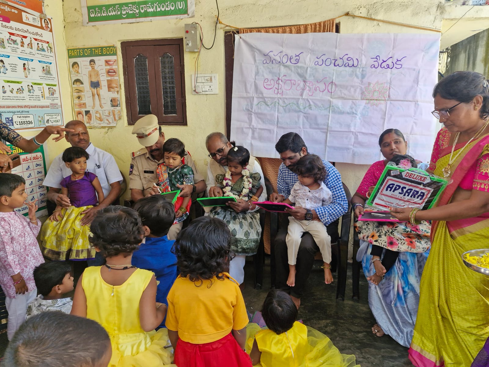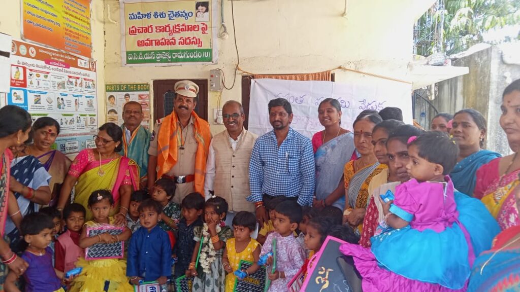 నేటి సాక్షి గోదావరిఖని (రమేష్): అంగన్వాడి కేంద్రంలో పిల్లలకు అక్షరాభ్యాసం కార్యక్రమం. రామగుండం మున్సిపల్ కార్పొరేషన్ పరిధిలోని, 25వ డివిజన్ చంద్రబాబు కాలనీలో ని, అంగన్వాడి కేంద్రంలో వెలుగు సామాజిక స్వచ్ఛంద సంస్థ ఫౌండర్ అండ్ చైర్మన్ లయన్ డాక్టర్ సురభి శ్రీధర్ ఆధ్వర్యంలో పిల్లలకు అక్షర అభ్యాసం కార్యక్రమం నిర్వహించారు. కార్యక్రమానికి ముఖ్య అతిథులుగా సంస్థ అధ్యక్షులు పెద్దంపేట్ శంకర్ గౌడ్, సంస్థ ప్రధాన కార్యదర్శి లయన్ డాక్టర్ చింతలపల్లి కిషన్ రావు, ఏఎస్ఐ డాక్టర్ బాయ్ శ్రీనివాస్ హాజరై పిల్లలకు అక్షర అభ్యాసం కార్యక్రమం నిర్వహించారు. అనంతరం అతిధులు మాట్లాడారు. అంగన్వాడి కేంద్రాల్లో విధులు నిర్వహిస్తున్న టీచర్లు, ఆయలు అందిస్తున్న సేవలు వెలకట్టలేమని అన్నారు.అంగన్వాడీ కేంద్రంలో రెండు సంవత్సరాలు దాటిన పిల్లలను చేర్పించినట్లు అయితే పిల్లలను అన్ని రకాల ఎదుగుదల ఉంటుందన్నారు. ఇంగ్లీషు బోధన ఎల్కేజీ యూకేజీ విద్యను , మూడు సంవత్సరాల పిల్లలకు ఎల్కేజీ నాలుగు సంవత్సరాల పిల్లలకు యూకేజీ విద్యను ప్రైవేట్ పాఠశాలలకు దీటుగా అంగన్వాడీ కేంద్రాలలో అందించడం జరుగుతుందని, ఒక పూట సంపూర్ణ భోజనం తో పాటు పిల్లలకు సాయంత్రం 4 గంటల వరకు అంగన్వాడీ కేంద్రాలలో విద్యను అందించటం జరుగుతుంది. అని తెలిపారు.అందరూ తమ తమ చిన్న పిల్లలను అంగన్వాడీ కేంద్రాలలో చేర్పించాలని కోరారు. కార్యక్రమంలో అల్లురి సెక్టార్ సూపర్వైజర్ మమత, అంగన్వాడి టీచర్ బి. భాగ్యలక్ష్మి ,ఆయా ఎల్.ఆర్ ఈశ్వరి తోపాటు పిల్లల, తల్లులు పాల్గొన్నారు.