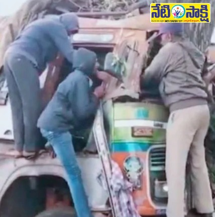 అదుపుతప్పి చెట్టును ఢీ కొట్టిన లారీ