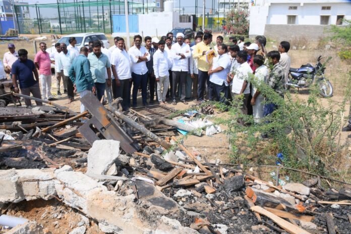 నేటి సాక్షి ప్రతినిధి వనపర్తి జిల్లా : వనపర్తి పట్టణం 22వ వార్డు బాలాజీ నగర్ కు చెందిన జీవన్ రావు ఫర్నిచర్ షాపు ప్రమాదవశాత్తు కాలిపోయింది.స్థానికుల ద్వారా విషయం తెలుసుకున్న వనపర్తి శాసనసభ్యులు తూడి మేఘారెడ్డి బుధవారం సంఘటన స్థలాన్ని సందర్శించి పరిశీలించారు.ఈ ప్రమాదంలో షాప్ లో ఉన్న సోఫా సెట్లు, కుర్చీలు, తలుపులు, దర్వాజాలు, డ్రెస్సింగ్ టేబుల్లు, టేబుల్ల తో పాటు గృహో పకరణానికి సంబంధించిన కట్టె ఫర్నిచర్, టేకు కట్టే ఇలాంటివి పూర్తిగా కాలిపోయాయని దాదాపు 80 లక్షల రూపాయల నష్టం వాటిల్లినట్లు బాధితుడు జీవన్రావు పేర్కొన్నారు. ఈ సందర్భంగా ఎమ్మెల్యే బాధితుడు మాట్లాడుతూ ప్రభుత్వపరమైన సహాయ సహకారాలు అందేలా ప్రత్యేకంగా కృషి చేస్తానని ఇలాంటి అజ్జయిర్ ఎప్పుడు వద్దని బాధితుడుని ఎమ్మెల్యే ఓదార్చారు. కార్యక్రమంలో స్థానిక మాజీ కౌన్సిలర్ సత్యం సాగర్, మున్సిపల్ మాజీ వైస్ చైర్మన్ పాకనాటి కృష్ణయ్య, మాజీ కౌన్సిలర్ వెంకటేష్, ఎల్ఐసి కృష్ణయ్య, బి కృష్ణ, నక్క రాములు, కాంగ్రెస్ పార్టీ నియోజకవర్గ సమన్వయకర్త లక్కాకుల సతీష్, కాంగ్రెస్ పార్టీ కార్యకర్తలు పట్టణ ప్రజలు తదితరులు పాల్గొన్నారు.