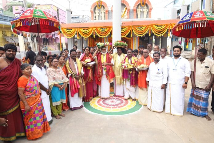 - మూలస్థాన ఎల్లమ్మ ఆలయానికి విచ్చేసిన ఎమ్మెల్యే పులివర్తి నాని దంపతులకు పూర్ణకుంభంతో స్వాగతం పలికిన ఆలయ అర్చకులు,