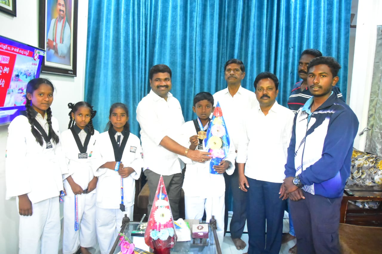 నేటి సాక్షి రామడుగు (పురాణం సంపత్): స్టేట్ లెవల్ తైక్వాండో పోటీల్లో రామడుగు మండలం వెలిచాల సరస్వతి ఇంగ్లిష్ మీడియం హైస్కూల్ విద్యార్థులు సత్తాచాటినట్లు హెచ్ఎం ఉప్పుల శ్రీనివాస్ తెలిపారు. హైదరాబాద్లో ఈ నెల 1,2వ తేదీల్లో జరిగిన పోటీల్లో 13 మంది విద్యార్థులు పాల్గొనగా ఈగ అశ్విత్కుమార్ గోల్డ్ మెడల్, బండపల్లి మేఘన బ్రాంజ్ మెడల్, రేగూరి శ్రీహాసిని బ్రాంజ్ మెడల్, పెద్దిగారి సింధు బ్రాంజ్ మెడల్ సాధించినట్లు ఆయన పేర్కొన్నారు. తైక్వాండో పోటీల్లో సత్తాచాటిన విద్యార్థులను చొప్పదండి ఎమ్మెల్యే మేడిపల్లి సత్యం సోమవారం అభినందించి నగదు బహుమతులు అందజేశారు. కార్యక్రమంలో వెలిచాల మాజీ సర్పంచ్ వీర్ల నర్సింగరావు, స్కూల్ కో కరస్పాండెంట్ ఉప్పుల సత్యం, కోచ్ శరత్, టీచర్స్ పాల్గొన్నారు.