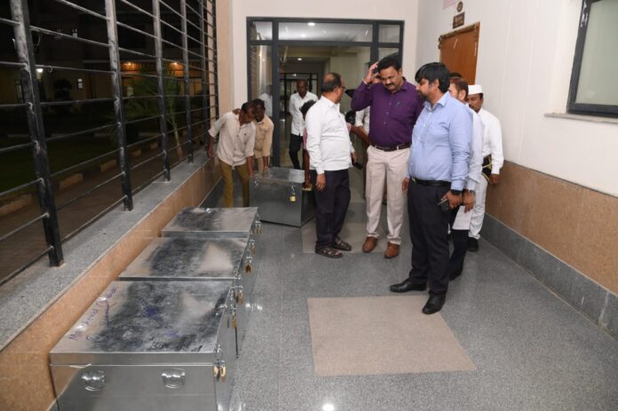 నేటి సాక్షి, మంచిర్యాల జిల్లా ప్రతినిధి:– మెదక్, నిజామాబాద్, ఆదిలాబాద్, కరీంనగర్ నియోజకవర్గాల ఉపాధ్యాయ, పట్టభద్రుల ఎమ్మెల్సీ ఎన్నికల నిర్వహణలో భాగంగా ఎన్నికల సంబంధిత సామాగ్రి జిల్లాకు చేరుకుందని జిల్లా ఎన్నికల అధికారి, కలెక్టర్ కుమార్ దీపక్ తెలిపారు. శనివారం జిల్లాకు చేరుకున్న ఎన్నికల సామాగ్రిని జిల్లాలోని నస్పూర్ లో గల సమీకృత జిల్లా కార్యాలయాల భవన సముదాయంలో రక్షణ చర్యల మధ్య భద్రపరిచారు. ఈ సందర్భంగా జిల్లా ఎన్నికల అధికారి, కలెక్టర్ మాట్లాడుతూ, ఉపాధ్యాయ, పట్టభద్రుల శాసనమండలి సభ్యుల ఎన్నికల నిర్వహణ కొరకు జిల్లాలో ఎన్నికల సంఘం నిబంధనల ప్రకారం చర్యలు తీసుకోవడం జరుగుతుందని తెలిపారు. ఈ క్రమంలో ఎన్నికల నిర్వహణలో భాగంగా ఛాలెంజ్ ఓట్ల పేపర్లు, ఫారాలు 7బి, 14, 14ఎ, 15, బ్యాలెట్ పేపర్ అకౌంట్ ఫారం -16, బ్యాలెట్ బ్యాక్స్ లు, బ్యాలెట్ పేపర్లు, పోలింగ్ అధికారులు, పోలింగ్ ఏజెంట్లకు అందించే గుర్తింపు కార్డులు, బ్యాలెట్ పేపర్స్ కౌంటర్ ఫైల్స్, పేపర్ సీల్స్, మెటల్ సీల్స్, ఫర్నీచర్, ఇంకు బాటిళ్లు, సీలింగ్ వాక్స్, గన్నీ సంచులతో పాటు ఇతర ఎన్నికల సంబంధిత సామాగ్రి జిల్లాకు చేరుకుందని తెలిపారు. ఎన్నికల సంఘం ఆదేశాల మేరకు అధికారులు, సిబ్బందికి పంపిణీ చేసేందుకు అవసరమైన చర్యలు తీసుకోవడం జరుగుతుందని తెలిపారు. ఈ కార్యక్రమంలో జిల్లా అదనపు కలెక్టర్ సబావత్ మోతిలాల్, మంచిర్యాల, బెల్లంపల్లి రాజస్వ మండల అధికారులు శ్రీనివాస్ రావు, హరికృష్ణ, వివిధ మండలాల తహశిల్దార్లు, కలెక్టరేట్ పరిపాలన అధికారి రాజేశ్వర్, ఎన్నికల విభాగం పర్యవేక్షకులు కెవై ప్రసాద్, సంబంధిత అధికారులు తదితరులు పాల్గొన్నారు.