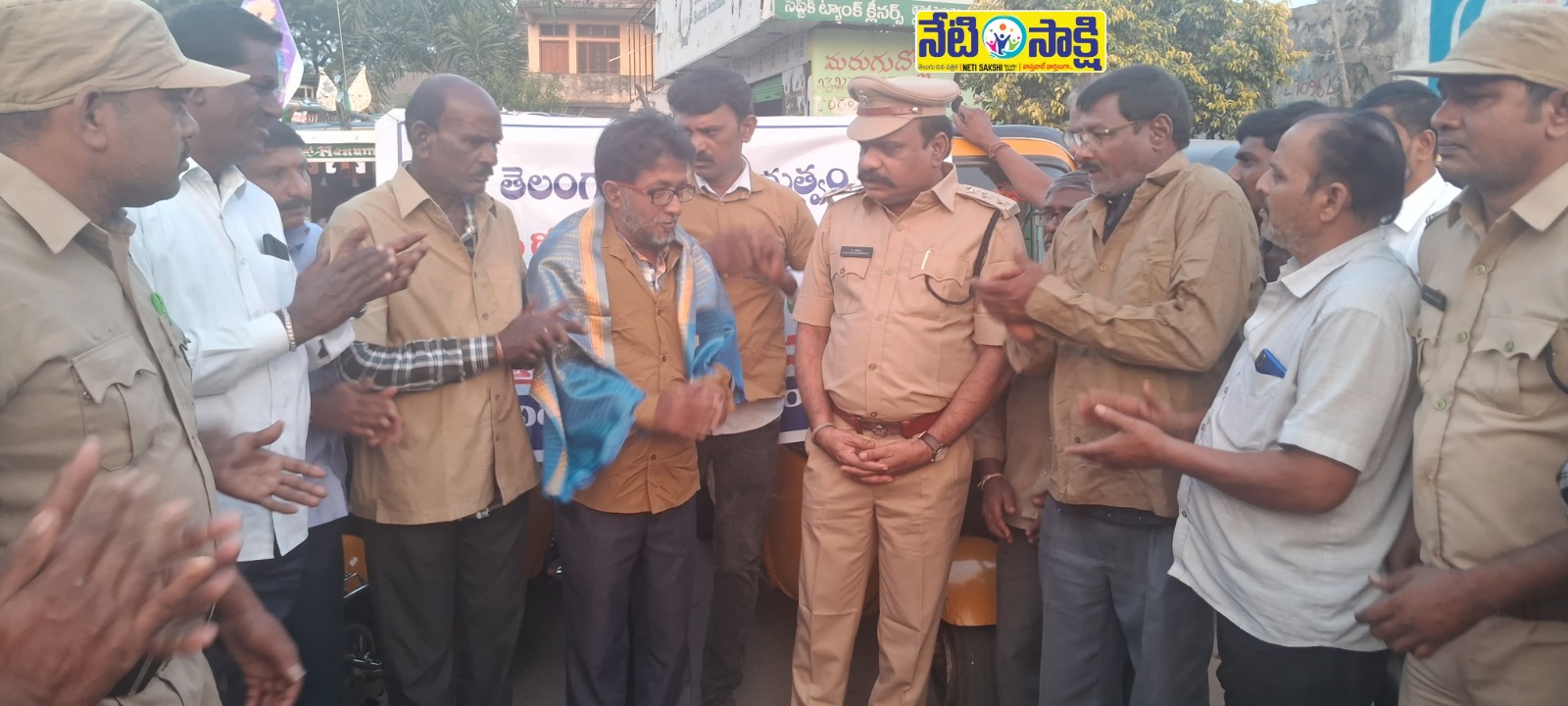 ఆటో డ్రైవర్లతో మోటార్ వెహికల్ ఇన్స్పెక్టర్ కంచి వేణు