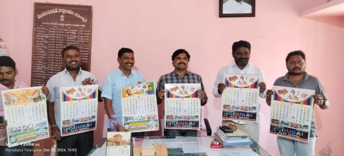 నేటి సాక్షి, కమలాపూర్: హనుమకొండ జిల్లా కమలాపూర్ మండల కేంద్రం లోని మండల పరిషత్ కార్యాలయం (ఎంపీడీఓ) లో విశ్వభారతి హైస్కూల్ వారి నూతన సంవత్సర క్యాలెండర్ ను ఎంపీడీవో గుండె బాబు , తెలంగాణ జర్నలిస్ట్ యూనియన్ గౌరవ అధ్యక్షులు మౌటం కుమారస్వామి, ప్రెస్ క్లబ్ అధ్యక్షులు పెర్క రమాకాంత్ ఆవిష్కరించారు. ఈ సందర్భంగా వారు మాట్లాడుతూ నూతన సంవత్సరంలో మండల ప్రజలు మరియు విద్యార్థిని విద్యార్థులు సంతోషంగా ఉండాలని ఆకాంక్షిస్తున్నామని వారు తెలిపారు. ఈ కార్యక్రమంలో విశ్వ భారతి హై స్కూల్ కరస్పాండెంట్ ఇంజపూరి మధుబాబు, ప్రిన్సిపల్ రాజు తదితరులు పాల్గొన్నారు.