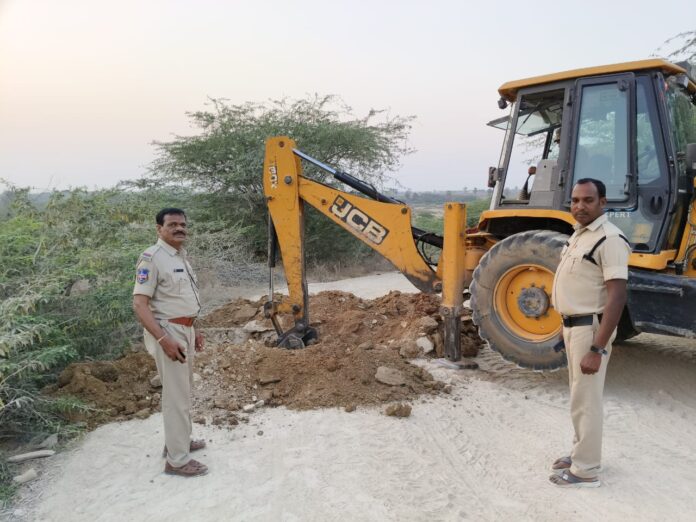 నేటి సాక్షి, బెజ్జంకి: బెజ్జంకి మండలంలోని తోటపల్లి, గాగిల్లాపూర్ గ్రామాలలో గల వద్ద మోయ తుమ్మెద వాగు నుంచి అక్రమంగా ఇసుక తరలింపు జరుగుతున్న నేపథ్యంలో, పోలీసులు మరియు రెవెన్యూ అధికారులు కఠిన చర్యలు చేపట్టారు. అక్రమ ఇసుక రవాణాను అడ్డుకోవడానికి వాగు పరిసర ప్రాంతాల్లో కందకం తవ్వించారు. ఈ సందర్భంగా ఎస్ఐ జె కృష్ణారెడ్డి మాట్లాడుతూ.. ఇకపై ఎవరైనా అక్రమ ఇసుక రవాణాకు పాల్పడితే కఠిన చర్యలు తీసుకుంటామని స్పష్టం చేశారు. ప్రజలు సహకరించాలని, ఇసుక అక్రమ రవాణా నివారణకు ఎవరైనా సమాచారం అందిస్తే తక్షణమే చర్యలు తీసుకుంటామని తెలిపారు.