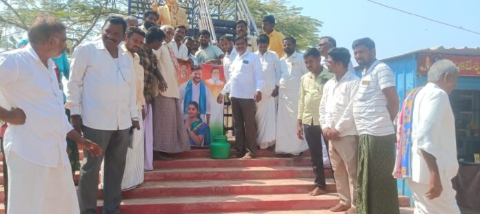 నేటి సాక్షి ప్రతినిధి గద్వాల్ ( రమేష్ ) : గద్వాల నియోజకవర్గం కేటిదొడ్డి మండల కేంద్రంలోని అంబేద్కర్ సర్కిల్ నందు జెడ్పి మాజ చైర్ పర్సన్,గద్వాల నియోజకవర్గ కాంగ్రెస్ పార్టీ ఇంచార్జీ సరితమ్మ ఆదేశానుసారం అసెంబ్లీ సమావేశం నందు తెలంగాణ రాష్ట్రంలోని బిసి,ఎస్సీ బిల్లులకు ఆమోదం తెలిపిన సీఎం రేవంత్ రెడ్డి గారికి క్యాబినెట్ సభ్యులకు ధన్యవాదాలు తెలుపుతూ కేటిదొడ్డి మండల కాంగ్రెస్ పార్టీ నాయకుల అధ్వర్యంలో సీఎం రేవంత్ రెడ్డి చిత్రపటాన్నికి పాలాభిషేకం నిర్వహించారు.. తెలంగాణ రాష్ట్రంలో ఎన్నో శతాబ్దాల నుంచి ఎదురుచూస్తున్న బిసీ, ఎస్సీ వర్గీకరణ బిల్లులను ఆమోదం తెలిపి రాష్ట్ర ముఖ్యమంత్రి సీఎం రేవంత్ రెడ్డి రెండు బిల్లులను అసెంబ్లీలో ఆమోదం తెలిపి పార్లమెంటుకు రాష్ట్ర ప్రభుత్వం పంపించే బిల్లును కేంద్ర బిజెపి ప్రభుత్వం పార్లమెంటులో బిసీ రిజర్వేషన్ బిల్లును,ఎస్సీ వర్గీకరణ ఆమోదం చేయాలని కాంగ్రెస్ పార్టీ నాయకులు కోరారు. ఈ కార్యక్రమంలో కాంగ్రెస్ పార్టీ సీనియర్ నాయకులు పాతపాలెం ఆనంద్ గౌడ్, ఉమిత్యాల తాయన్న, గుంతబాయి శ్రీను, సుల్తాన్పూరం రాజు, యర్సన్ దొడ్డి గోవింద్, రాఘవేంద్ర, సురేష్, తిరుపతి, వెంకటేశ్వర రెడ్డి, కంబయ్య, రామన్ గౌడ్, గోవింద్ రెడ్డి, కొండాపురం చాకలి నరేష్,కర్రెప్ప, వీరేష్, మైబూ, వీరేష్ తదితరులు ఉన్నారు.