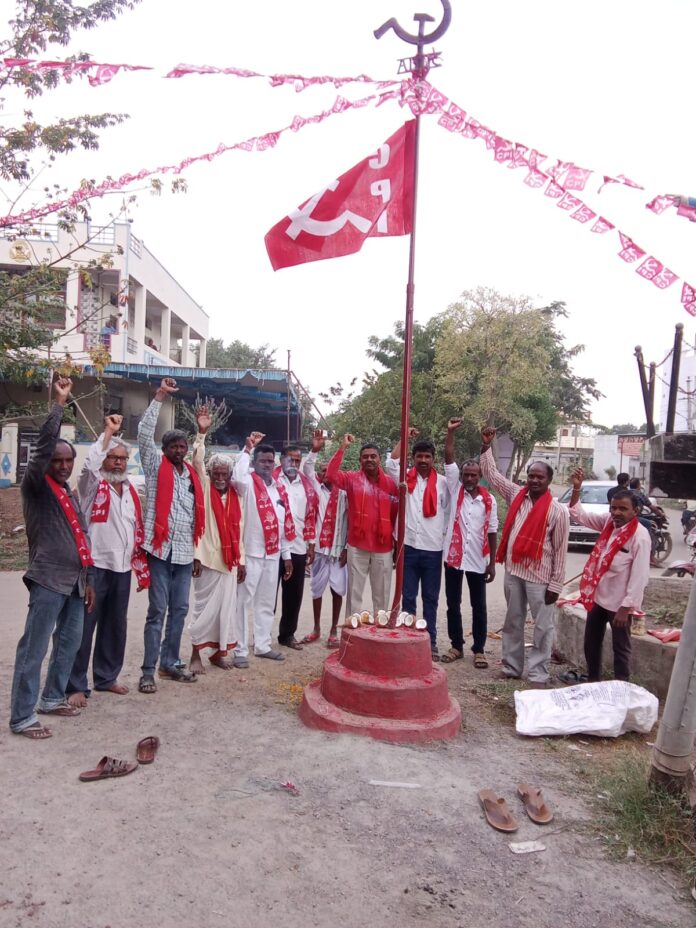గన్నేరువరం,మండలం కేంద్రం లో వివిధ గ్రామాలలో భారత కమ్యూనిస్ట్ పార్టీ జెండాలు ఎగురావేశారు. ఈ రోజుతో సిపిఐ పార్టీ పుట్టి 99, సంవత్సరాలు పూర్తి చేసుకొని 100.వ సంవత్సరంలో కి అడుగు పెడుతున్న సందర్బంగా పార్టీ నాయకులు కార్యకర్తలు సభ్యులు జెండా ఆవిష్కరించి ఘనంగా ఉత్సవాలు జరుపుకున్నారు. సిపిఐ పార్టీ ప్రజల కోసం ప్రజల శ్రేయస్సు కోసం ఎన్నో ఉద్యమాలు ఎన్నో పోరాటాలు ఎన్నెన్నో సమరాలు ఆనాటి నుండి ఇప్పటివరకు అలుపెరగకుండా నిత్యం పోరాటాలు చేస్తూనే ఉంటుందని సిపిఐ పార్టీఅని అన్నారు. భవిష్యత్తులో మరెన్నో పోరాటాలు చేస్తూనే ఉంటుంది అని అన్నారు. సిపిఐ సీనియర్ నాయకులు బోయిని మల్లయ్య, జాలి గోపయ్యకు, పార్టీ నాయకులు శాలువాతో ఘనంగా సన్మానం చేశారు. ఈ కార్యక్రమంలో మండల కార్యదర్శి కాంతల అంజిరెడ్డి, సహాయ కార్యదర్శి చొక్కాల శ్రీశైలం, ఘర్షకుర్తి శ్రీనివాస్, మండల నాయకులు బోయిని మల్లయ్య, కూన మల్లయ్య,జాలి గోపయ్య, ఎండీ నయీమ్, పిప్పల కనుకయ్య, కోతి సంపత్, రాపోలు రాజమల్లు, బోయిని తిరుపతి, మోలుగురి ఆంజనేయులు, గాజులు తిరుపతి, లక్ష్మణ్, తదితరులు పాల్గొన్నారు.