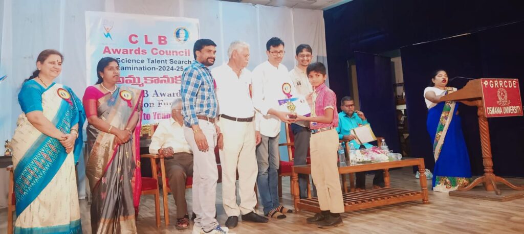 నేటి సాక్షి ఉమ్మడి వరంగల్ జిల్లా, స్టాఫ్ రిపోర్టర్ (సందెల రాజు) : చుక్కా రామయ్య ఆధ్వర్యంలో నిర్వహించిన 15 వ సైన్స్ టాలెంట్ సర్చ్ ఎగ్జామినేషన్ 2024-25 లో ఆర్బిట్ ఇ టెక్నో పాఠశాల విద్యార్థులు తమ అత్యుత్తమ ప్రతిభతో ఉత్తమ ర్యాంకులు సాధించినట్లు పాఠశాల ప్రిన్సిపల్ మరియు కరస్పాండెంట్ చిట్టి రెడ్డి భగవాన్ రెడ్డి తెలిపారు. ర్యాంకులు సాధించిన విద్యార్థులలో 6 వ తరగతికి చెందిన ఎం. పవన్ స్టేట్ లెవెల్ మొదటి ర్యాంకు, 10వ తరగతికి చెందిన టి. సంజన రెడ్డి స్టేట్ లెవెల్ రెండవ ర్యాంకు 9 వ తరగతి కి చెందిన కె. అశ్విత్ రెడ్డి, స్టేట్ లెవెల్ మూడవ ర్యాంకు, 6వ తరగతికి చెందిన జి. రేవంత్, నాలుగవ రాంక్ , 8వ తరగతికి చెందిన జి. నాగ శివాని, ఐదవ ర్యాంకు 10వ తరగతికి చెందిన పి. నిహారిక, ఐదవ ర్యాంకు 5వ తరగతి కి చెందిన టి. ఆర్. సుచిత 8వ ర్యాంకు, 7వ తరగతి కి చెందిన కె. అజయ్ కుమార్ కు 9 వ ర్యాంకు 8వ తరగతికి చెందిన ఎం. సహస్ర 9 ర్యాంకులు సాధించినట్లు తెలిపారు. ఈ నెల ఫిబ్రవరి 23 వ తేదీన ఉస్మానియా విశ్వ విద్యాలయంలో జరిగిన సి ఎల్ బి బహుమతుల ప్రధానోత్సవంలో ప్రొఫెసర్ శ్రీ ఆర్కే మిశ్రా (ఫార్మర్ డైరెక్టర్) ఐ.పి.ఇ. ఎస్ కళ్యాణ్ దత్ (ఐ ఐ టి ఢిల్లి ఏ ఐ యు) లెక్చరర్ ఇన్ ఫిజిక్స్), మరియు ఎస్. చరణ్ కౌశిక్ యాదవ్ (జనరల్ సెక్రెటరీ, ఏఐసిసి) వై.ఎస్ శర్మ (డైరెక్టర్ జి. ఈ. ఐ) ప్రొఫెసర్ విజయలక్ష్మి (శివ శివాని ఇంటర్నేషనల్ కాలేజ్ ఆఫ్ బిజినెస్) డాక్టర్ శ్యాం ప్రసాద్ (స్పీకర్) మరియు యూనివర్సిటీకి చెందిన ప్రొఫెసర్ల చేతుల మీదుగా 1 వ ర్యాంకు సాధించిన ఎం. పవన్ (6 వ తరగతి) 5116 రూపాయలు, రెండవ ర్యాంకు సాధించిన టి. సంజన (10 వ తరగతి) 3116 రూపాయలు, మూడవ ర్యాంకు సాధించిన కె. అశ్విత్ రెడ్డి (9వ తరగతి) వారికి 2116 రూపాయలతో పాటు మెమొంటో, సర్టిఫికెట్లు మరియు మిగిలిన విద్యార్థులకు కూడా మెమెంటోల తో పాటు సర్టిఫికెట్లు బహుమతిగా ఇచ్చారన్నారు. స్టేట్ లెవెల్ ర్యాంకులు సాధించిన విద్యార్థులను పాఠశాల ప్రిన్సిపల్ మరియు కరస్పాండెంట్ చిట్టి రెడ్డి భగవాన్ రెడ్డి మరియు పాఠశాల డైరెక్టర్ హారిక రెడ్డి అభినందించారు.