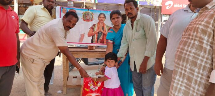 నేటి సాక్షి, ఎండపల్లి (రియాజ్): జగిత్యాల జిల్లా ఎండపల్లి మండలంలోని రాజారాంపల్లి వివేకానంద చౌరస్తాలో తెలంగాణ ఆర్యవైశ్య ముద్దుబిడ్డలు ఆర్యవైశ్య కార్పోరేషన్ చైర్మన్ కాలువ సుజాత, మాజీ పోలీస్ హౌజింగ్ కార్పోరేషన్ చైర్మన్ కోలేటి దామోదర్ చిత్రపటాలకు ఆర్యవైశ్య సంఘం సభ్యులు పాలాభిషేకం నిర్వహించి స్వీట్లు, పండ్లు పంపిణీ చేశారు. తెలంగాణ ఆర్యవైశ్య పేద కుటుంబాల సంక్షేమ సంఘం వ్యవస్థాపక అధ్యక్షులు సముద్రాల రమేష్ గుప్తా ఆద్వర్యంలో జరిపిన ఈ కార్యక్రమంలో పేద కుటుంబానికి చెందిన ఈగం లావణ్య రాజేందర్ కుటుంబానికి 25 కిలోల బియ్యం, వేయి రూపాయల నగదు అందించడం జరిగింది. ఈ సందర్భంగా రమేష్ గుప్తా మాట్లాడుతూ.. గత 30 సంవత్సరాల నుండి మా పేద ఆర్యవైశ్యులను ఎవరు గుర్తించలేదని, మా తెలంగాణ ఆర్యవైశ్య ముద్దుబిడ్డలు కాలువ సుజాతక్క, కోలేటి దామోదరన్న సహకారంతో మా పేద వైశ్యులకు హైదరాబాదు ఉప్పల్ బాగాయతులో ఐదు ఎకరాలు సుమారు 100 కోట్ల పైన విలువ చేసే భూమిని పేద వైశ్యుల కోసం తీసుకురావడంలో వారు చేసిన కృషి అభినందనీయమని, ఈ భూమిలో పేద వైశ్యులకు ఉపయోగపడే విద్యా, వైద్యం, ఉపాధి అందించే విధంగా చూడాలని, దీనికి సుజాతక్క పేద వైశ్యుల తరపున ముందుండి పోరాడాతూనే ఆర్య వైశ్య కార్పోరేషన్ కి నిధులు తీసుకురావాలని కోరారు. ఆర్యవైశ్య కార్పోరేషన్ ఏర్పాటు చేసిన సీఎం రేవంత్ రెడ్డి కృతజ్ఞతలు తెలిపారు. ఒకప్పుడు పల్లెటూర్లలో ఆర్యవైశ్యులకు మాత్రమే కిరాణ షాపులు ఉండేవని, కానీ గత పది సంవత్సరాల నుండి వివిధ కులాల వారు కూడా షాపులు ఏర్పాటు చేస్తున్నందున వైశ్యులు ఉపాధి కోల్పోయి నిరుపేద వైశ్యులుగా మారుతున్నందున ప్రభుత్వం ఆదుకోవాలని కోరారు. ఈ కార్యక్రమంలో యాంసాని రమేష్ గుప్తా, రాయంచు సదాశివ్, కటకం భాస్కర్, రవి కిరణ్, గుంత సంతోష్, సిరంగి లక్ష్మణ్, చెట్ల మునీందర్, ముత్యం శ్రీనివాస్, కాసం చంద్రశేఖర్, ఈగం లావణ్య, రాజేందర్, ఇరుకుల్ల సంతోష్ తదితరులు పాల్గొన్నారు.
