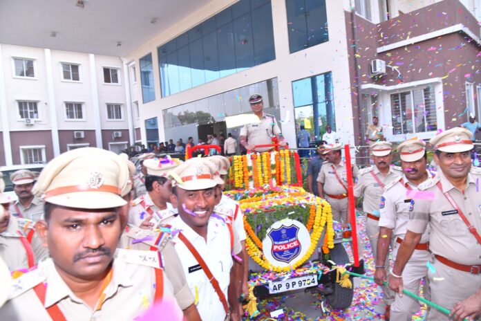 నేటి సాక్షి గోదావరిఖని (రమేష్) : రామగుండం సిపిగా పనిచేసి సిఐడి విభాగానికి బదిలీపై వెళ్తున్న ఎమ్. శ్రీనివాస్ కు పోలీసు అధికారులు సిబ్బంది ఘనంగా సోమవారం కమిషనరేట్ ఆవరణలో సోమవారం వీడ్కోలు పలికారు. పోలీస్ కమీషనరేట్ హెడ్ క్వార్టర్స్ లో జరిగిన కార్యక్రమంలో జరిగిన కార్యక్రమములో బదిలీ పై వెళ్తున్న ఎం. శ్రీనివాస్ కి పోలీసుల గౌరవ వందనాలు సమర్పించారు. ముందుగా గజమాలతో సత్కరించి వాహనంలో సీపీ ని హెడ్ క్వార్టర్స్ గేట్ వరకు కమీషనరేట్ పోలీసు అధికారులందరూ సిబ్బంది వాహనం కు ఏర్పాటు చేసిన తాడును లాగి సాదరంగా వీడ్కోలు పలికారు.ఈ సందర్భంగా బదిలీ పై వెళ్తున్న సీపీ మాట్లాడుతూ… రామగుండం పోలీస్ కమీషనరేట్ లో పని చేసిన సమయం, చేసిన కార్యక్రమాలు మరువలేనివని ఎంతో తృప్తి నీ ఇచ్చాయని తెలియజేశారు. దాదాపు 13 నెలలపాటు చేసిన సమయంలో సహకరించిన పోలీసు అధికారులు, సిబ్బందికి సీపీఓ సిబ్బందికి ప్రతి ఒక్కరికి సీపీ కి ప్రత్యేకంగా ధన్యవాదాలు తెలియజేశారు. శాంతి భద్రతల పరిరక్షణలో నిరంతరం కష్టపడుతూ అందరి సమన్వయము తో పార్లమెంటు ఎన్నికలను, వి వి వి పిల కార్యక్రమాలు, పోటీ పరీక్షలు మరియు పండుగలను ప్రశాంత వాతావరణంలో ఎలాంటి అవాంఛనీయ సంఘటనలను చోటు చేసుకోకుండా పూర్తి చేయడం జరిగిందని తెలిపారు. రామగుండం పోలీస్ కమీషనరేట్ లో పని చేయడం సంతృప్తినిచ్చిందన్నారు. ఇక్కడి ఆఫీసర్లు, సిబ్బంది సమస్వయం, ఒక టీమ్ లాగా అందరూ కలిసి కట్టుగా పని చేయడం బాగుందన్నారు.