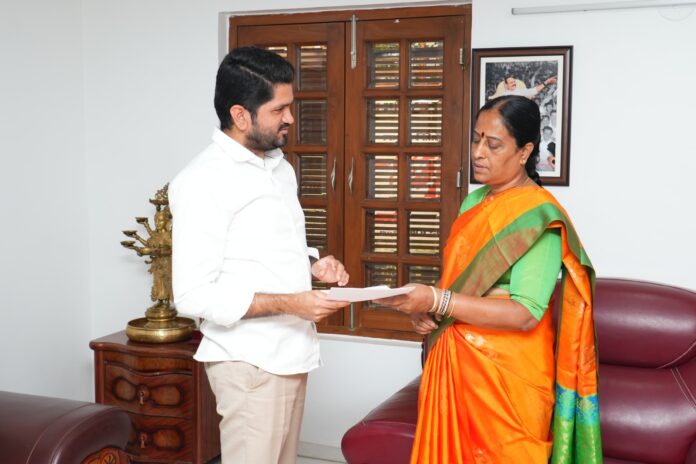నేటి సాక్షి, హుజురాబాద్ ఆర్.సి.(రాఘవుల శ్రీనివాసు): హుజురాబాద్ నియోజకవర్గంలో ఉన్న దేవాలయల అర్చకుల సమస్యలపై దేవాదాయ, ధర్మాదాయ శాఖ మంత్రి కొండ సురేఖను శనివారం నాడు హైదరాబాద్ లోని వారి నివాసంలో హుజురాబాద్ కాంగ్రెస్ పార్టీ నియోజకవర్గ ఇంచార్జి వొడితల ప్రణవ్ మర్యాదపూర్వకంగా కలిశారు. ఈ సందర్భంగా అపర భద్రాద్రిగా పేరొందిన ఇళ్ళందకుంట శ్రీ సీతారామచంద్ర స్వామి దేవస్థాన కమిటీ త్వరలోనే ఏర్పాటు చేసి, బ్రహ్మోత్సవాల్లో భక్తులకు ఎలాంటి ఇబ్బందులు కలగకుండా ఉండేందుకు అన్ని ఏర్పాట్లు చేసి ఘనంగా నిర్వహిస్తామని మంత్రికి తెలిపారు. కాంగ్రెస్ ప్రభుత్వం అధికారంలోకి వచ్చిన తర్వాత దేవాలయాల అభివృద్ధికి కృషి చేస్తుందని, దాంట్లో భాగంగా హుజురాబాద్ నియోజకవర్గ దేవాలయాల సమస్యలు పరిష్కరిస్తామని మంత్రి హామీ ఇచ్చినట్లు ప్రణవ్ తెలిపారు.