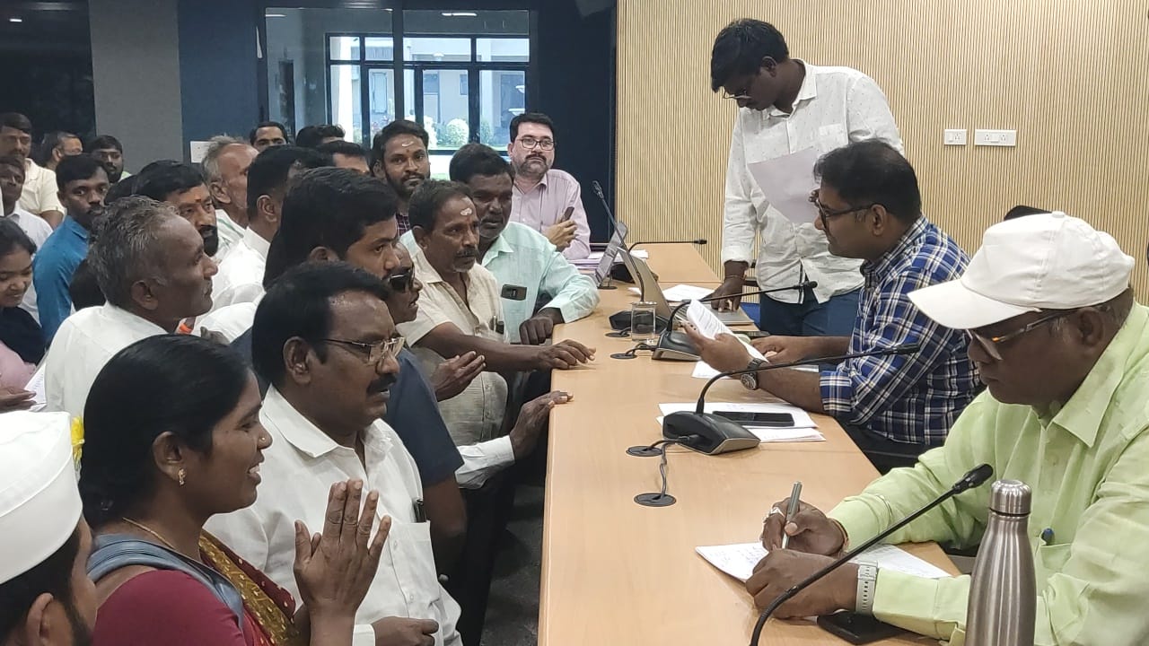నేటి సాక్షి,పెద్దపల్లి (వోడ్నాల తిరుపతి ): ప్రజావాణి దరఖాస్తులను పూర్తిగా పరిష్కరించి, పెండింగ్ లేకుండా చూడాలని జిల్లా కలెక్టర్ కోయ శ్రీ హర్ష ఆదే శించారు.సోమవారం ప్రజావాణి కార్యక్రమం సందర్భంగా జిల్లా కలెక్టర్ కోయ శ్రీ హర్ష అదనపు కలెక్టర్ డి.వేణుతో కలిసి దరఖాస్తులు స్వీకరించారు. ప్రజల నుంచి సోమవారం ప్రజావాణి కార్యక్రమంలో రెవెన్యూ శాఖకు సంబంధించి 26 దరఖాస్తులు ఇతర శాఖలకు సంబంధించి 16 దరఖాస్తులు వచ్చాయని, వీటిని సంబంధిత అధికారులకు కేటాయిస్తూ ప్రాధాన్యత క్రమంలో పరిష్కరించాలని ఆదేశించడం జరిగిందని కలెక్టర్ తెలిపారు.రామగిరి మండలం, కల్వచర్ల గ్రామానికి చెందిన రాపెల్లి సాయి రెడ్డి గ్రామ శివారులోని సర్వే నెంబర్ 89 లో 2 ఎకరాల 18 గుంటల వ్యవసాయ భూమి ఉందని, ఇది ధరణి లో నమోదు కావడం లేదని, మొఖ మీద ఎవరు ఉన్నారు విచారించి తగిన న్యాయం చేయాలని కోరుతూ దరఖాస్తు చేసుకోగా తహసిల్దార్ కు రాస్తూ నిబంధన ప్రకారం చర్యలు తీసుకోవాలని కలెక్టర్ సూచించారు.పెద్దబొంకూర్ గ్రామంలో ఊరు చెరువు నుంచి సాగు నీరు వెళ్ళేందుకు రైల్వే లైన్ కింది నుంచి పైప్ ఉందని, ప్రస్తుతం రైల్వే వాళ్లు ఆ పైప్ మూసి వేస్తున్నారని, తమ గ్రామానికి సాగునీటి సమస్య ఉందని దీని పరిష్కరించాలని కోరుతూ పెద్దబొంకూర్ గ్రామ రైతులు దరఖాస్తు చేసుకోగా ఈఈ నీటిపారుదల శాఖ కు రాస్తూ అవసరమైన చర్యలు తీసుకోవాలని కలెక్టర్ ఆదేశించారు. పెద్దపల్లి పట్టణం బండారి కుంటకు చెందిన చంద్రగిరి సోని తను పుట్టుకతో మూగ చెవిటి దానినని, ఇంటర్ వరకు చదువుకున్నానని తమ కుటుంబం పేదరికంలో ఉన్నందున వికలాంగుల కోటాలో ఏదైనా శాఖలో ఉద్యోగం ఇప్పించి జీవనోపాధి కల్పించాలని కోరుతూ దరఖాస్తు చేసుకోగా భారతదేశ సైటుకు రాస్తూ అవకాశం మేరకు చర్యలు తీసుకోవాలని కలెక్టర్ తెలిపారు. ఈ ప్రజావాణి కార్యక్రమంలో జిల్లా అధికారులు, తదితరులు పాల్గొన్నారు.