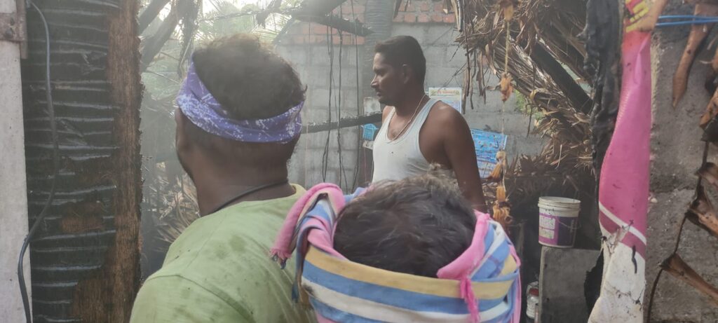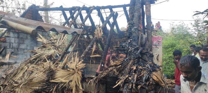 నేటి సాక్షి, మునగాల : విద్యుదాఘాతంతో పూరి గుడిసె దగ్ధమైన ఘటన మండల పరిధిలోని వెంకట్రాంపురం లో సోమవారం చోటుచేసుకుంది. గ్రామస్తులు తెలిపిన వివరాల ప్రకారం గ్రామానికి చెందిన చింత సైదులు సోమవారం ఉదయం రోజులాగే కూలి పనులకు కుటుంబ సభ్యులతో కలిసి వెళ్ళాడు సాయంకాలం ఇంటికి చేరుకున్న తర్వాత రాత్రి 08:00 గ0, ప్రాంతంలో మొదట పగలురాగా, ఆ తరువాత ఒక్కసారిగా మంటలు చెలరేగాయి. ఈ ఘటనలో పూరి గుడిసె పూర్తిగా దగ్ధమైంది. గుడిసెలో ఉన్న బట్టలు, రూ. లక్ష నగదు, రెండు తులాల బంగారం, ఆధార్ కార్డు, రేషన్ కార్డు, విలువైన డాక్యుమెంట్లతో పాటు నిత్యవసర వస్తువులు బూడిదయ్యాయి. కట్టు బట్టలతో కుటుంబం బజారు పడిందంటూ గ్రామస్తులు ఆవేదన వ్యక్తం చేశారు. విద్యుత్తు సరఫరా లో రెండు పేసు ల కరెంటు రావడంతోనే మంటలు చెలరేగి పూరి గుడిసె పూర్తిగా కాలి బూడిద యిందంట బాధితులు ఆవేదన వ్యక్తం చేశారు. గ్రామస్తులంతా బిందెల ద్వారా నీటిని తీసుకువచ్చి మంటలను ఆర్పి వేశారు. చింత సైదులు కుటుంబాన్ని ప్రభుత్వమే ఆదుకోవాలని గ్రామస్తులు విజ్ఞప్తి చేశారు.