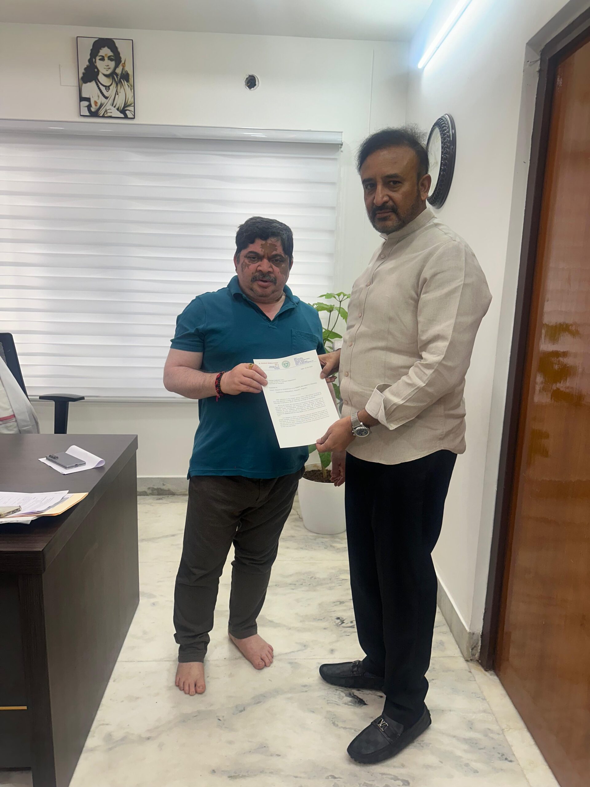 - మంత్రికి వినతి పత్రం అందించిన ఎమ్మెల్యే మదన్ మోహన్