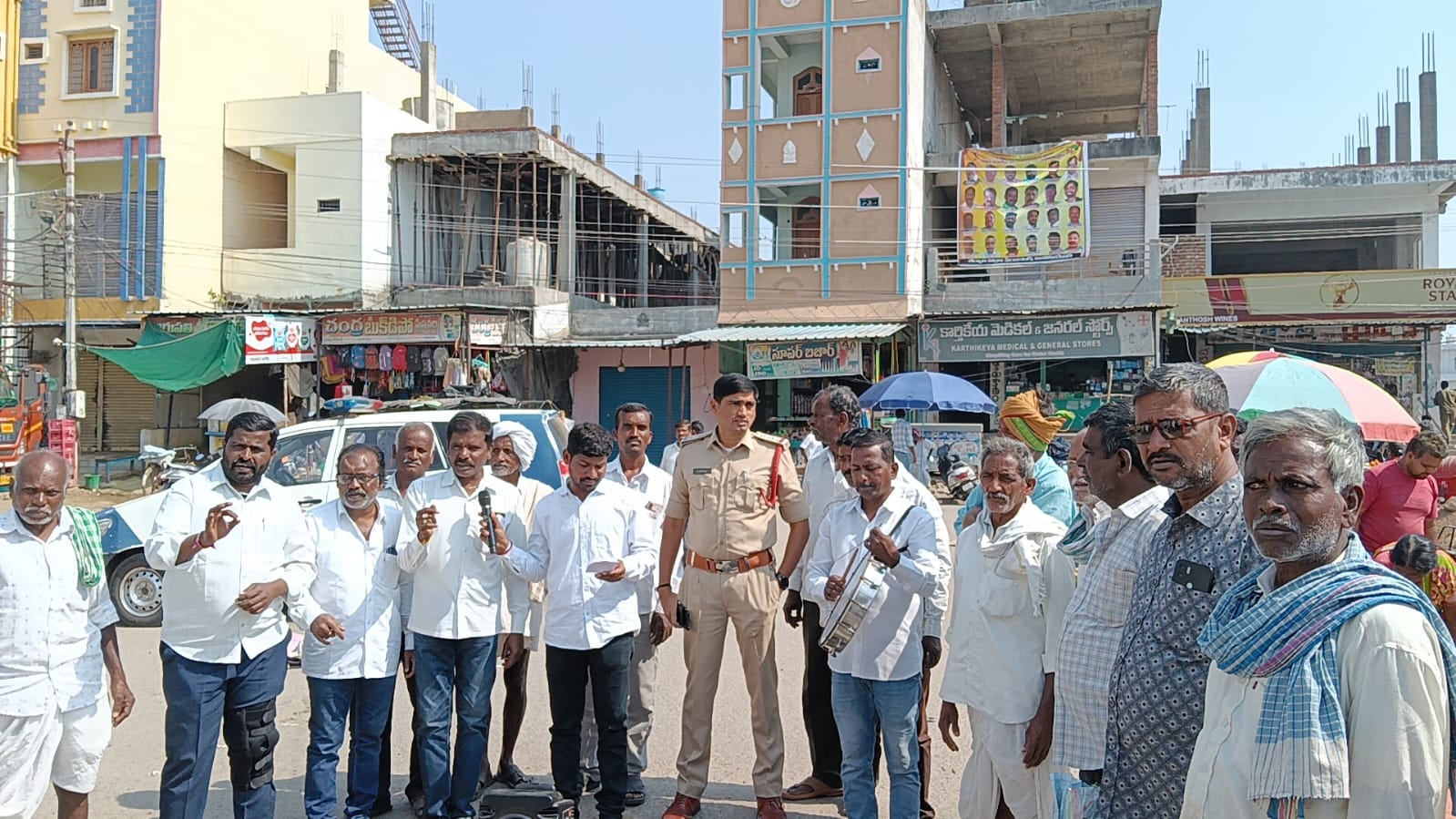 - చేర్యాల మార్కెట్ చౌరస్తాలో చేర్యాల సీఐ శ్రీను ఆధ్వర్యంలో తెలంగాణ సాంస్కృతిక కార్యక్రమాలు