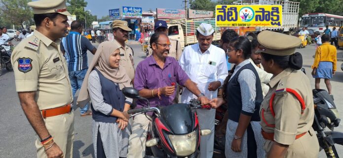 - హెల్మెట్, సీట్ బెల్ట్ ధరించని వాహనదారులకు గులాబీ పూలు ఇచ్చి విద్యార్థుల వినూత్న అవగాహన