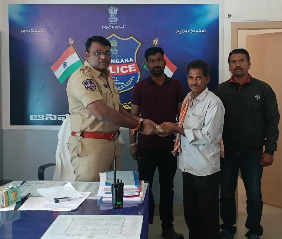 నేటి సాక్షి, కొమరం భీమ్ ఆసిఫాబాద్:ఆసిఫాబాద్ పట్టణంలోని స్టేట్ బ్యాంక్ ఆఫ్ ఇండియా (SBI) శాఖలో పోగొట్టుకున్న రూ.50 వేల నగదును పోలీసుల సకాలంలో తీసుకున్న చర్యలతో గుర్తించి బాధితుడికి అందజేసినట్లు ఆసిఫాబాద్ సీఐ బాలాజీ వరప్రసాద్ తెలిపారు.వివరాల్లోకి వెళితే, శనివారం ఆసిఫాబాద్ మండలం అప్పపల్లి గ్రామానికి చెందిన బాపురాం SBI బ్యాంకులో రూ.2 లక్షల నగదును విత్డ్రా చేశారు. అనంతరం బ్యాంకులోనే కూర్చొని నగదును లెక్కపెట్టే క్రమంలో రూ.50 వేలును పక్కన పెట్టి మర్చిపోయారు. ఇంటికి వెళ్లిన తర్వాత నగదును పరిశీలించగా రూ.50 వేలు తక్కువగా ఉన్నట్లు గుర్తించి వెంటనే ఆసిఫాబాద్ పోలీస్ స్టేషన్లో ఫిర్యాదు చేశారు.ఫిర్యాదు అందుకున్న వెంటనే పోలీసులు బ్యాంకులోని సీసీ కెమెరా ఫుటేజీలను పరిశీలించి, అక్కడ మర్చిపోయిన నగదును తీసుకెళ్లిన వ్యక్తిని గుర్తించారు. అతడిని సంప్రదించి రూ.50 వేల నగదును స్వాధీనం చేసుకుని, పూర్తి విచారణ అనంతరం బాధితుడు బాపురాంకు సీఐ బాలాజీ వరప్రసాద్ చేతుల మీదుగా నగదును అందజేశారు.పోలీసుల వేగవంతమైన దర్యాప్తు, బాధ్యతాయుతమైన చర్యలతో బాధితుడికి న్యాయం చేయడంపై జిల్లా ఎస్పీ నితిక పంత్ ఆసిఫాబాద్ పోలీసులను అభినందించారు.