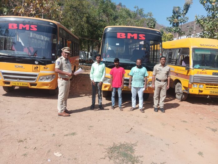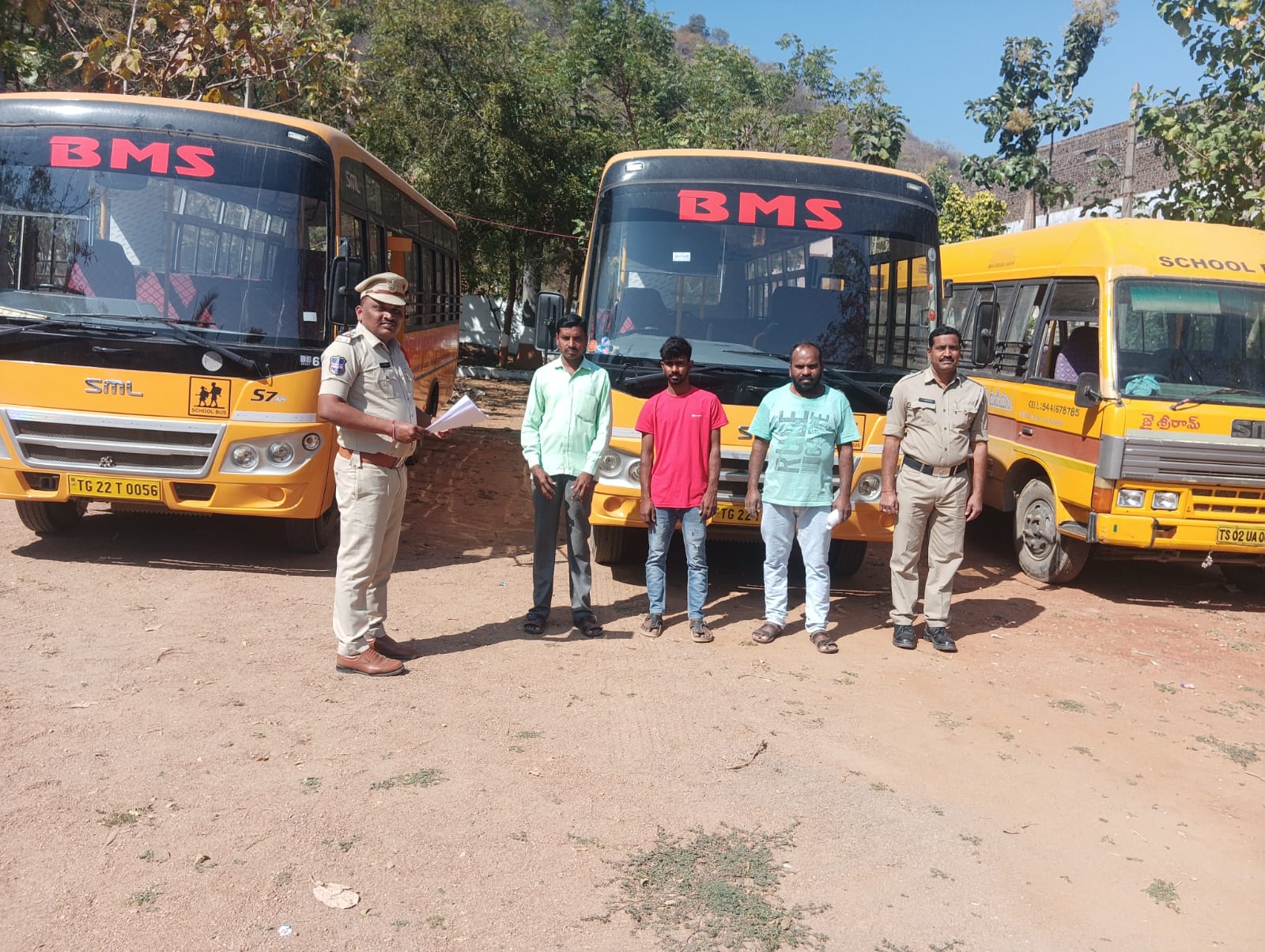 నేటి సాక్షి, ధర్మపురి ప్రతినిధి, ( గుండ ప్రశాంత్ గౌడ్ ) : జగిత్యాల జిల్లా ఎస్పీ అశోక్ కుమార్ ఐపీఎస్ ఆదేశాల మేరకు గొల్లపల్లి మండలం స్కూల్ బస్సులను తనిఖీ చేసిన గొల్లపల్లి ఎస్సై సతీష్ రోడ్డు మరియు రహదారి భద్రత మాసోత్సవంలో భాగంగా జగిత్యాల జిల్లా ఎస్పీ శ్రీ అశోక్ కుమార్ ఐపీఎస్ ఆదేశాల మేరకు గొల్లపల్లి ఎస్సై సిహెచ్ సతీష్ గొల్లపల్లి మండల పరిధిలో గల ప్రైవేట్ స్కూల్ బస్సులను తనిఖీ చేయడం జరిగింది. ఈ తనిఖీలో భాగంగా ప్రతి స్కూల్ బస్సులో ఎమర్జెన్సీ ఎగ్జిట్ ఫస్ట్ ఎయిడ్ బాక్స్ అందుబాటులో ఉండే విధంగా చర్యలు తీసుకోవాలనీ మరియు డ్రైవర్ గాని క్లీనర్ గాని ఎట్టి పరిస్థితిలో తాగి డ్రైవింగ్ చేయొద్దని స్కూల్ బస్సులకు సంబంధించిన ఫిట్నెస్ సర్టిఫికెట్, ఆర్ సి ఇన్సూరెన్స్ మిగతా అన్ని సర్టిఫికెట్స్ ఎప్పటికప్పుడు అప్డేట్ చేసుకోవాలని సూచించడం జరిగింది. ఈ కార్యక్రమంలో ప్రైవేట్ స్కూల్స్ యజమాన్యాలు మరియు డ్రైవర్లు పోలీస్ సిబ్బంది పాల్గొన్నారు.