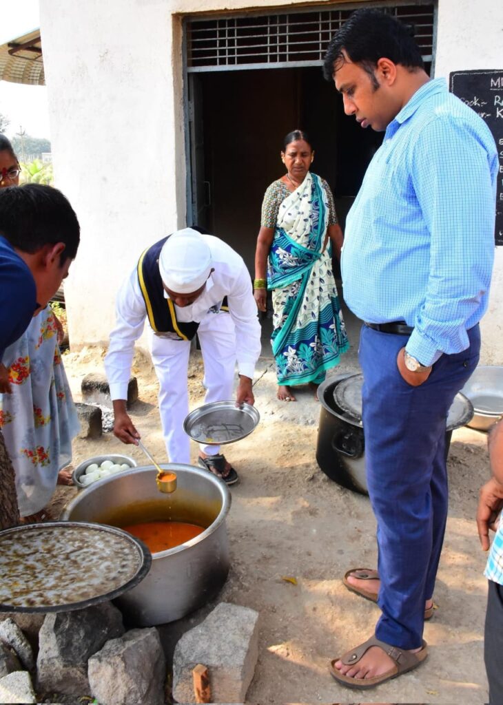 మెనూ ప్రకారం ప్రతి రోజు ఏ ఏ ఆహార పదార్థాలను తయారు చేస్తున్నారో ఆరా తీశారు. కూరగాయలు పప్పు, కోడిగుడ్లు సిద్ధం చేస్తుండగా, నాణ్యతను తనిఖీ చేశారు.ఈ రోజు ఎందరు విద్యార్థులు, టీచర్లు హాజరయ్యారో ఆరా తీయగా, మొత్తం 84 మంది విద్యార్థులు, అందరూ టీచర్లు వచ్చారని కలెక్టర్ దృష్టికి ప్రధానోపాద్యాయులు విద్యాసాగర్ తీసుకెళ్లారు మరియు విద్యార్థులకు బోధన పాఠశాల లోని 6వ తరగతి నుంచి 10 వ తరగతి వరకు గదులను కలెక్టర్ పరిశీలించారు. ఈ సందర్భంగా జిల్లా కలెక్టర్ సందీప్ కుమార్ ఝా విద్యార్థులతో మాట్లాడుతూ.. పదో తరగతిలో విద్యార్థులు ఉత్తమ ఫలితాలు సాధించాలని ఆకాంక్షించారు. 10 వ తరగతి విద్యార్థుల కు మ్యాథ్స్, ఫిజిక్స్, బయాలజీ పాఠాలు బోధించారు. విద్యార్థులకు మ్యాథ్స్ ప్రశ్నలు వేసి, సమాధానాలు రాబట్టి విద్యార్థులను ఉత్తేజ పరిచారు. పదో తరగతి పరీక్షల నేపథ్యంలో విద్యార్థులను సిద్ధం చేయాలని, ప్రత్యేక తరగతులు నిర్వహించాలని సూచించారు. ప్రతి పాఠ్యాంశాన్ని క్షుణ్ణంగా వివరించాలని ఉపాధ్యాయులకు సూచించారు.