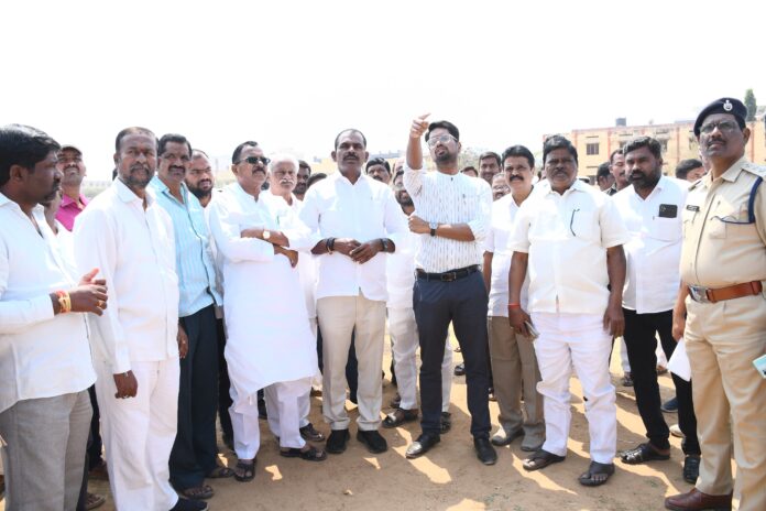 నేటి సాక్షి ప్రతినిధి వనపర్తి జిల్లా : మార్చి 2న రాష్ట్ర ముఖ్యమంత్రి ఎ. రేవంత్ రెడ్డి వనపర్తి జిల్లా పర్యటనను విజయవంతం చేసేందుకు తీసుకోవాల్సిన చర్యల పై గురువారం నాగర్ కర్నూలు పార్లమెంట్ సభ్యులు మల్లు రవి, వనపర్తి శాసన సభ్యులు తూడి మేఘారెడ్డి, డిఎస్పీ వేంకటేశ్వర రావు, ఇతర జిల్లా అధికారులతో కలిసి స్థల పరిశీలన చేశారు. కే.డి.ఆర్ పాలిటెక్నిక్ కళాశాల వెనక భాగంలో హెలిప్యాడ్ ఏర్పాట్లు, ముందు భాగంలో నిర్వహించనున్న ప్రజాపాలన – ప్రగతి బాట బహిరంగ సభకు చేయాల్సిన ఏర్పాట్లను పరిశీలించారు. అదే విధంగా ప్రభుత్వ బాలుర పాఠశాల మైదానంలో నిర్వహించనున్న వివిధ అభివృద్ధి పనుల శంకుస్థాపనలకు ఎలాంటి ఏర్పాటు చేయాలి అనే విషయాలపై పార్లమెంట్ సభ్యులు, శాసన సభ్యులతో చర్చించారు.వనపర్తి జిల్లాలో ముఖ్యమంత్రి పర్యటన సందర్భంగా వారి చేతుల మీదుగా జరిగే వివిధ అభివృద్ధి పనులకు శంకు స్థాపనలు, జాబ్ మేళా, నైపుణ్య శిక్షణ కార్యక్రమం ప్రారంభోత్సవ కార్యక్రమాలను విజయవంతం చేసేందుకు పకడ్బందీగా ప్రణాళికలు చేసుకోవాలని నాగర్ కర్నూల్ పార్లమెంట్ సభ్యులు మల్లు రవి, శాసన సభ్యులు తూడి మేఘా రెడ్డి కలెక్టర్ ను సూచించారు. అదనపు కలెక్టర్ రెవెన్యూ జి వెంకటేశ్వర్లు , ఇటీవల వనపర్తి జిల్లా నుండి బదిలీ పై వెళ్లిన అదనపు కలెక్టర్ లోకల్ బాడీస్ సంచిత్ గంగ్వార్, ప్రస్తుత ఇన్చార్జి యాదయ్య, రోడ్లు భావనాల కార్య నిర్వహక ఇంజనీరు దేశ్యా నాయక్, ఆర్డీఓ సుబ్రమణ్యం, డిఎస్పీ వేంకటేశ్వర రావు, సి. ఐ, ఎస్సై లు తదితరులు పాల్గొన్నారు.