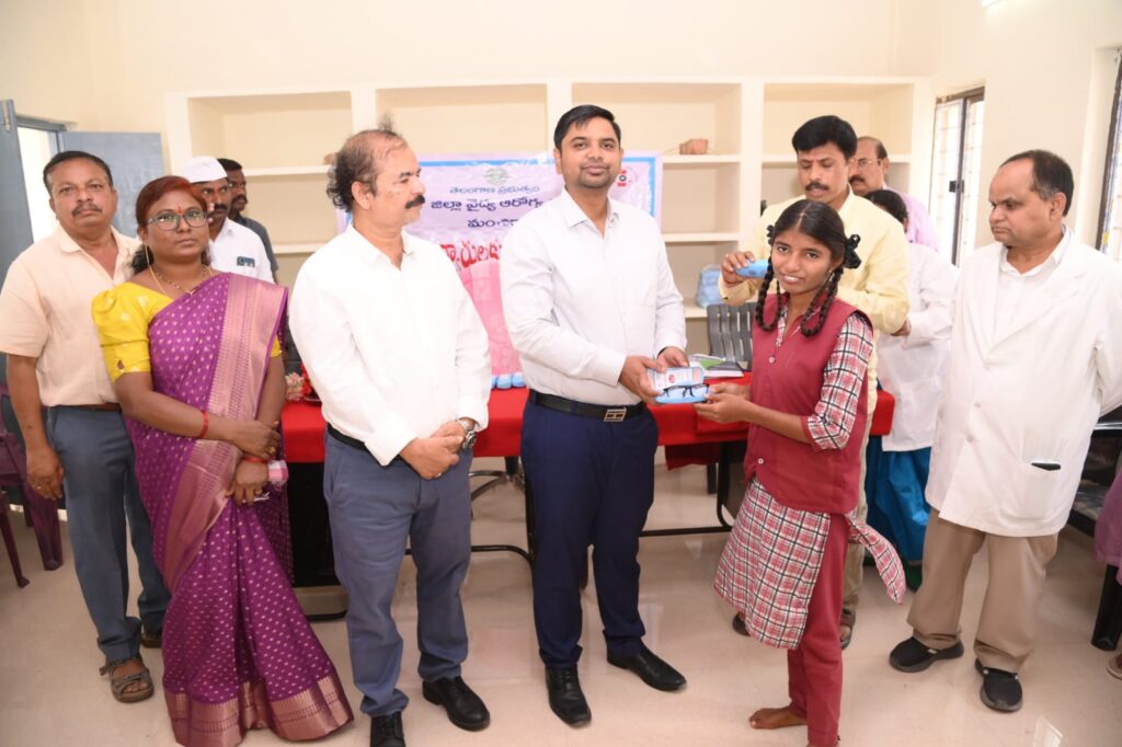 నేటి సాక్షి, మంచిర్యాల జిల్లా ప్రతినిధి:- ప్రభుత్వ పాఠశాలలో విద్య అభ్యసిస్తున్న విద్యార్థులలో కంటి అద్దాలు అవసరమైన వారికి పంపిణీ చేసేందుకు చర్యలు తీసుకోవడం జరుగుతుందని జిల్లా కలెక్టర్ కుమార్ దీపక్ తెలిపారు. మంగళవారం జిల్లా కేంద్రంలోని రాజీవ్ నగర్ లో గల కస్తూరిభా గాంధీ బాలికల విద్యాలయంలో 20 మంది విద్యార్థులకు జిల్లా వైద్య, ఆరోగ్యశాఖ అధికారి డా, హరీష్ రాజ్, వైద్య అధికారులతో కలిసి కంటి అద్దాలు అందజేశారు. ఈ సందర్భంగా జిల్లా కలెక్టర్ మాట్లాడుతూ, జిల్లాలోని 568 పాఠశాలలు ఉండగా ఇందులో 164 రెసిడెన్షియల్ పాఠశాలలలో 8 ఆర్ బి ఎస్ కె బృందాల ద్వారా విద్యార్థులకు పరీక్షలు నిర్వహించి 1 వేయి 274 మంది విద్యార్థులకు కంటి సమస్యలు ఉన్నట్లుగా గుర్తించడం జరిగిందని తెలిపారు. వీరందరికీ కంటి వైద్య నిపుణులు డా, యశ్వంత్ రావు, డా. చంద్రబాన్, డా. శిల్ప శ్రీ, ఆప్తాల్మిక్ అధికారులు శంకర్, భాస్కర్ రెడ్డిల ద్వారా ఫిబ్రవరి నెలలో ప్రభుత్వాసుపత్రిలో పరీక్షలు నిర్వహించి అద్దాల కోసం వివరాలు పంపించడం జరిగిందని తెలిపారు. కంటి సమస్యలతో బాధపడుతున్న వారిని బృందాల ద్వారా గుర్తించి కంటి వైద్య నిపుణుల ద్వారా పరీక్షలు చేసి అద్దాలు పంపిణీ చేయడం జరిగిందని, కంటి అద్దాలను తప్పనిసరిగా వినియోగించాలని తెలిపారు. కంటి సమస్యలు రాకుండా ప్రతి ఒక్కరూ ఆహార అలవాట్లు మార్చుకోవాలని, ఏదైనా కంటి సమస్యలు ఉన్నట్లయితే ఆర్ బి ఎస్ కె. బృందాల ద్వారా గుర్తించి ప్రభుత్వపరంగా చికిత్సలు పొందాలని తెలిపారు. ప్రతి ఆశ్రమ పాఠశాలలు, ప్రభుత్వ రెసిడెన్షియల్ పాఠశాలలలో వైద్య శిబిరాలు ఏర్పాటు చేయాలని, వాతావరణ మార్పులతో వచ్చే వ్యాధులు, వేసవికాలంలో వడదెబ్బ నుండి తీసుకోవలసిన జాగ్రత్తలపై అవగాహన కల్పించాలని, ఓఆర్ఎస్ ప్యాకెట్లు అందుబాటులో ఉంచాలని తెలిపారు. జిల్లాలోని 1 వేయి 241 మంది విద్యార్థులకు కంటి అద్దాలు అందించే విధంగా చర్యలు తీసుకోవడం జరుగుతుందని తెలిపారు. ఈ కార్యక్రమంలో జిల్లా వైద్య, ఆరోగ్యశాఖ ఉప వైద్యాధికారి డా. అనిత, జిల్లా అంధత్వ నివారణ అధికారి డా. యశ్వంతరావు, వైద్యాధికారులు, డా. ప్రసాద్, డా. కృపాబాయి, డా. అశోక్, డా. శ్వేత, మాస్ మీడియా అధికారి బుక్క వెంకటేశ్వర్లు, పాఠశాల ప్రిన్సిపల్ స్వప్న, ఉపాధ్యాయులు, వైద్యాధికారులు, సిబ్బంది తదితరులు పాల్గొన్నారు.