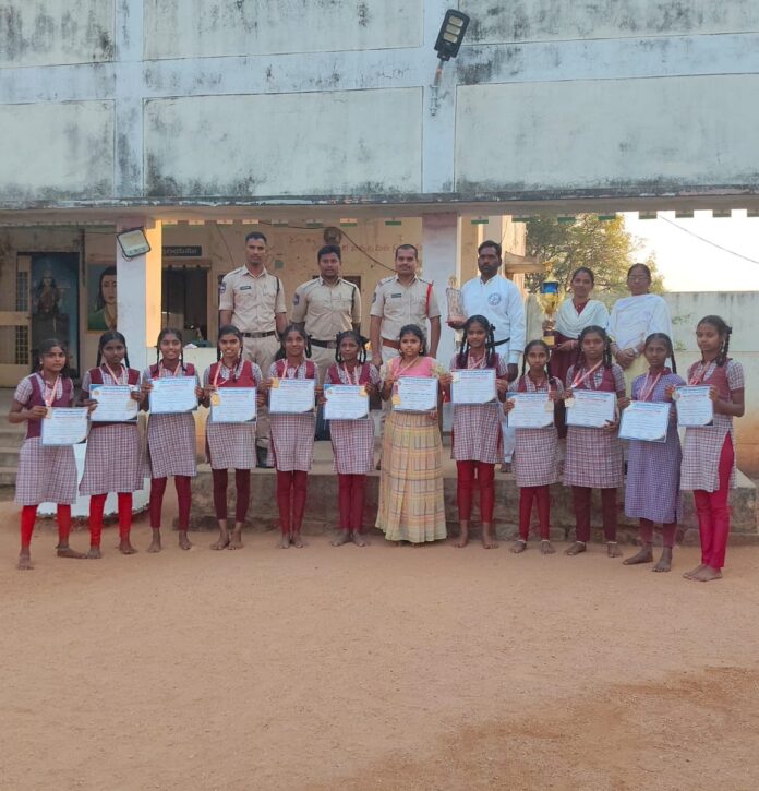 నేటి సాక్షి, కొడిమ్యాల : కొడిమ్యాల మండల సంద్రాలపల్లి కస్తూర్బా గాంధీ బాలికల విద్యాలయం విద్యార్థులు ఆదివారం 16-02-2025 నాడు సిరిసిల్ల లో జరిగిన స్పార్క్ కుంగ్- ఫు అకాడమీ ఆఫ్ ఇండియా వారు నిర్వహించిన కుంగ్- ఫు, కరాటే చాంపియన్షిప్ 2025 లో బంగారు, వెండి, కాంస్య పతకాలు సాధించారు. ఈ సందర్భంగా గౌరవనీయులు కొడిమ్యాల ఎస్. ఐ. సందీప్ సిబ్బంది. పాఠశాల కు విచ్చేసి విద్యార్థులను అభినందించారు. ఎస్.ఐ. సందీప్ చేతుల మీదుగా గెలుపొందిన కడారి మాధురి, గోగుల బాలలక్ష్మి, గుండు ఐశ్వర్య, నేరెళ్ల ఐశ్వర్య, తిరుమణి సౌమ్య, తా పేట కీర్తన, దొంతర వేణి పూజ, గుంట భూమిక, బసనవేని మధుప్రియ, బసనవేని మానస, బొజ్జ రాఘవి, బుర్ర అర్చన, పల్లెపు వందన, సుర రమ్య, గరిగంటి హాసిని, బోనాల రేణుక, లకు పతకాలు, ట్రోపి, షీల్డ్ ను విద్యార్థులకు, కరాటే మాస్టర్ బి. లక్ష్మి రాజం అందజేశారు. ఈ కార్యక్రమంలో పాఠశాల స్పెషల్ ఆఫీసర్ బి. లావణ్య , స్టాఫ్ మరియు కరాటే మాస్టర్ లక్ష్మి రాజం గారు పాల్గొన్నారు.