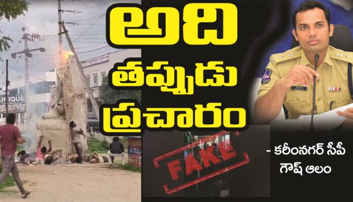 నేటి సాక్షి, కరీంనగర్: కరీంనగర్లో వినాయక విగ్రహానికి కరెంటు తీగలకు తగిలి 9 మంది మరణించారనే వార్త పూర్తిగా అవాస్తవమని కరీంనగర్ పోలీసు కమిషనర్ గౌష్ ఆలం స్పష్టం చేశారు. ఈ మేరకు గురువారం ఒక ప్రకటన విడుదల చేశారు. వాస్తవాలు తెలుసుకోకుండా కొందరు సోషల్ మీడియాలో తప్పుడు ప్రచారం చేస్తున్నారని మండిపడ్డారు. కరీంనగర్ జిల్లాలో అలాంటి విద్యుత్ ప్రమాదం ఏదీ జరగలేదని వివరించారు. వైరల్అవుతున్న పోస్టు 4 నెలల క్రితం కోరుట్లలో జరిగిందని చెప్పారు. దానిని ఇప్పుడు కొంత మంది ఫార్వర్డ్చేస్తూ.. అది కరీంనగర్లో జరిగినట్టు ప్రచారం చేస్తున్నారన్నారు. ఇలాంటి తప్పుడు కథనాలను ప్రజలు నమ్మొద్దని, వాటిని ఇతరులకు ఫార్వర్డ్ చేయొద్దని సీపీ విజ్ఞప్తి చేశారు. వాస్తవాలు తెలుసుకోకుండా తప్పుడు ప్రచారం చేసి ప్రజలను భయభ్రాంతులకు గురిచేసే వారిపై కఠిన చర్యలు తీసుకుంటామని సీపీ హెచ్చరించారు. ముఖ్యంగా సోషల్ మీడియా వేదికల్లో నకిలీ వార్తల పట్ల ప్రజలు అప్రమత్తంగా ఉండాలని కోరారు.
