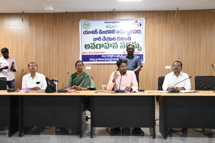 నేటి సాక్షి ప్రతినిధి వనపర్తి జిల్లా : శుక్రవారం జిల్లా కలెక్టరేట్లోని సమావేశ మందిరంలో యూనిక్ డిజేబుల్ ఐడి అంశంపై ఎంపీడీవోలు, మీసేవ ఆపరేటర్లకు అవగాహన సమావేశం నిర్వహించారు.కలెక్టర్ మాట్లాడుతూ ప్రతి ఒక్క దివ్యాంగుడికి ఒక ప్రత్యేకమైన గుర్తింపు కార్డు ఉండాలని ప్రభుత్వం యూ డి ఐ డి ( యూనిక్ డిజేబుల్ ఐడి)ని అమల్లోకి తీసుకొచ్చిందని చెప్పారు. రానున్న రోజుల్లో యు డి ఐ డి పోర్టల్ ద్వారానే దివ్యాంగులకు ధ్రువపత్రాలు జారీ చేయడం జరుగు తుందని చెప్పారు. యూ డి ఐ డి కార్డు కోసం దివ్యాంగులు ఆన్లైన్ (www.swavlambancard.gov.in) ద్వారా అప్లై చేసుకో వాలన్నారు. ఆన్లైన్ లో అప్లై చేసి లాగిన్ చేసుకున్న తర్వాత స్లాట్ బుక్ చేసుకోవడం ద్వారా, వైద్యులు అసెస్మెంట్ చేయడానికి తేదీ నిర్ధారించడం జరుగుతుందన్నారు. వైద్యుల అసెస్మెంట్ పూర్తయిన తర్వాత దివ్యాంగులకు యూడిఐడి కార్డు పోస్ట్ ద్వారా ఇంటికి వస్తుందని చెప్పారు.గతంలో సదరం పోర్టల్ ద్వారా కేవలం 7 డిజేబులిటీస్ కి మాత్రమే అవకాశం ఉండేదని, ఇప్పుడు యూ డి ఐ డి పోర్టల్ లో 21 డిజిబిలిటీస్ కి అవకాశం ఉందని చెప్పారు. దివ్యాంగులకు యూ డి ఐ డి అప్లై చేసే విషయంలో మీసేవ ఆపరేటర్లది కీలక పాత్రని, ఆన్లైన్లో అప్లై చేసే సమయంలో దివ్యాంగుల వివరాలను ఎలాంటి తప్పులు లేకుండా నమోదు చేయాలని చెప్పారు. ఫోన్ నెంబర్, ఇంటి అడ్రస్ సక్రమంగా నమోదు చేయాలని సూచించారు. ఈ విషయంలో ఎంపీడీవోలు, మున్సిపల్ కమిషనర్లు మీసేవ ఆపరేటర్లతో సమన్వయం చేసుకోవాలని సూచించారు.సమావేశంలో అదనపు కలెక్టర్ స్థానిక సంస్థలు యాదయ్య, డి ఆర్ డి వో ఉమాదేవి, డిఎంహెచ్వో శ్రీనివాసులు, ఇతర అధికారులు తదితరులు పాల్గొన్నారు.