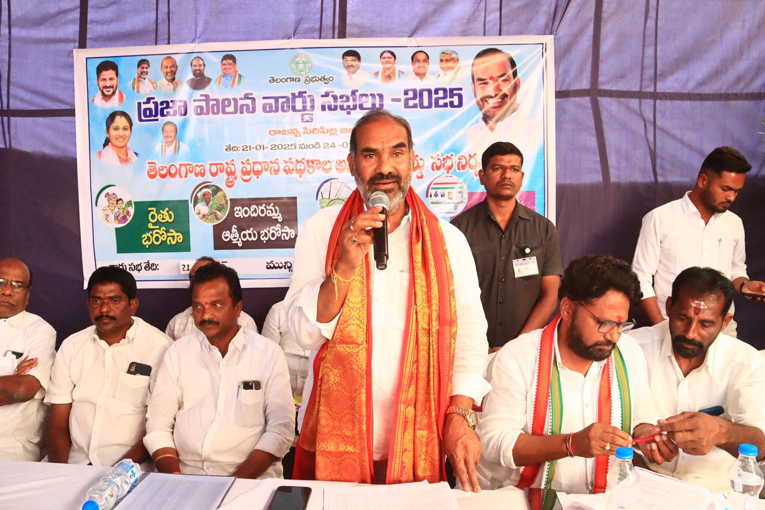 నేటి సాక్షి ప్రతినిధి, వేములవాడ : మంగళవారం వేములవాడ పట్టణంలోని 22 వార్డు లో ప్రజా పాలన కార్యక్రమంలో ముఖ్య అతిథిగా హాజరై వారు మాట్లాడుతూ.. ప్రజా ప్రభుత్వంలో ఏర్పడిన నాటి నుండి ఇచ్చిన హామీలను ఒక్కొక్కటిగ అమలు చేసుకుంటూ ముందుకు పోతున్నామని తెలిపారు. ఇప్పటికే మహిళలకు ఆర్టీసీ బస్సులో ఉచిత ప్రయాణం, ఆరోగ్యశ్రీ పరిమితి 10 లక్షలకు పెంచడం జరిగిందని, 200 వరకు ఉచిత విద్యుత్ అందజేయడం జరుగుతుందన్నారు. గత పది సంవత్సరాలుగా ప్రజలు ఎదురు చూస్తున్న రేషన్ కార్డులు మంజూరు చేయడం జరుగుతుందన్నారు. ప్రజా పాలనలో మీరూ ఇచ్చిన దరఖాస్తులను పరిశీలించి లబ్ధిదారులను ఎంపిక చేయడం జరుగుతుందని తెలిపారు. గ్రామ, వార్డు సభల్లో నూతంగా కూడా దరఖాస్తు చేసుకోవాలని, లబ్ధిదారులను ఎంపిక చేసి ఈ నెల 26వ తేదీన పంపిణీ చేయడం జరుగుతుందన్నారు. గతంలో లాగా నాలుగు గోడల మధ్య ఉండే ఎంపిక ప్రక్రియ కాదు ప్రజల మధ్య చర్చించి నిజమైన అర్హులను ఎంపిక చేయడం జరుగుతుందన్నారు. వేములవాడ పట్టణంలోని మురుగునీరు గుడి చెరువు, మూల వాగులో కలవకుండా 9 కోట్లతో ప్రత్యేక ప్రణాళికను రూపొందిస్తున్నామని తెలిపారు. ఈ నెల 26 నుండీ రేషన్ కార్డులు, ఇందిరమ్మ ఇల్లు, రైతు భరోసా ఇవ్వడం జరుగుతుందని అన్నారు. రేషన్ కార్డుల్లో పెరు లేని వారు ఈ నెల 21 నుండీ 24 వరకు గ్రామ సభలో తమ తమ పేర్లు నమోదు చేసుకోవాలన్నారు. మన ప్రాంతంలో అదనంగా మరో 4696 ఇళ్లను మంజూరి చేయడం జరిగిందని పేర్కొన్నారు. భూమి లేని వ్యవసాయ కూలీల కుటుంబాలకు ఏడాదికి 12,000 రూపాయలకు రెండు విడతలుగా అందించేందుకు ప్రభుత్వం ఇందిరమ్మ ఆత్మీయ భరోసా పథకాన్ని ప్రారంభించిందన్నారు. జనవరి 16 నుంచి జనవరి 20 వరకు క్షేత్రస్థాయి పరిశీలన చేసి జనవరి 21 నుంచి జనవరి 24 వరకు గ్రామసభలు నిర్వహించి ప్రభుత్వం చేపడుతున్న 4 కార్యక్రమాలను జనవరి 26 నుంచి అమలు చేయడం జరుగుతుందన్నారు. ప్రజలు సద్వినియోగం చేసుకోవాలని పేర్కొన్నారు. ఈ కార్యక్రమంలో మున్సిపల్ వైస్ చైర్మన్ బింగి శ్రీనివాస్, మార్కెట్ కమిటీ చైర్మన్ రోండి రాజు, కౌన్సిలర్ ఇప్ప పుల అజయ్, ఎమ్మార్వో మహేష్, పట్టణ అధ్యక్షుడు చంద్రగిరి శ్రీనివాస్ గౌడ్, మార్కెట్ కమిటీ డైరెక్టర్లు, స్థానిక నాయకులు, అధికారులు పాల్గొన్నారు.