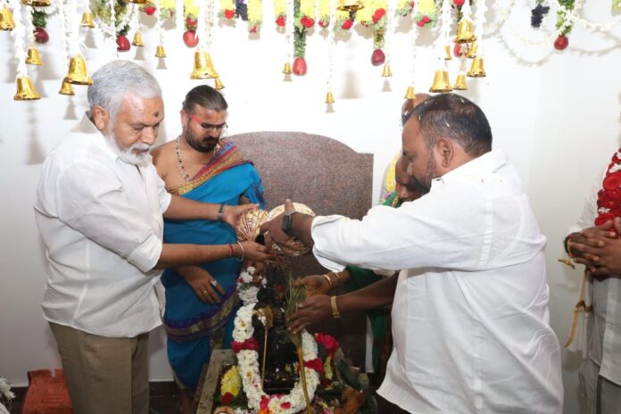 నేటి సాక్షి తిరుపతి జిల్లా (బాదూరు బాల) : పూతలపట్టు మండలం పరిధిలోని కొత్త వెంకటాపురం, పి. కొత్తకోట గ్రామాల్లో నూతనంగా ఏర్పాటు చేసిన శ్రీ బాల వినాయక, శ్రీ బాల సుబ్రహ్మణ్యేశ్వర స్వామి దేవాలయంలో విగ్రహాల ప్రతిష్ట మహోత్సవాలు వైభవంగా జరిగింది. ఈ కార్యక్రమంలో ముఖ్యఅతిథిలుగా చంద్రగిరి ఎమ్మెల్యే పులివర్తి నాని పూతలపట్టు ఎమ్మెల్యే డాక్టర్ మురళీ మోహన్ హాజరయ్యారు. ముందుగా ఆలయాలకు చేరుకున్న ఎమ్మెల్యేలకు ఆలయ ధర్మకర్తలు, అర్చకులు పూర్ణకుంభంతో స్వాగతం పలికారు. అనంతరం శ్రీ బాల వినాయక, శ్రీ బాల సుబ్రహ్మణ్యేశ్వర స్వామి దేవాలయ ప్రతిష్ట మహోత్సవం కార్యక్రమంలో భాగంగా నిర్వహించిన ప్రత్యేక హోమం పూజలో పాల్గొన్నారు. అనంతరం ఎమ్మెల్యే లకు వేద పండితుల ఆశీర్వాదం తీసుకుని భక్తిశ్రద్ధలతో స్వామి వార్లను దర్శించుకున్నారు. ఈ కార్యక్రమంలో కూటమి ప్రభుత్వం నాయకులు కార్యకర్తలు మహిళలు తదితరులు పాల్గొన్నారు.