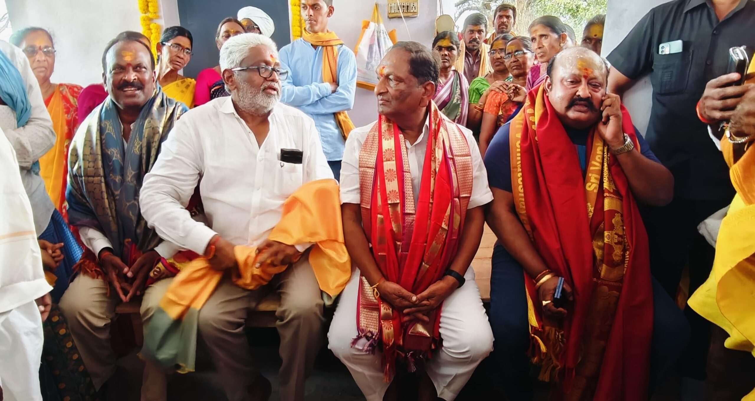 నేటి సాక్షి, ఎండపల్లి(రియాజ్): జగిత్యాల జిల్లా వెల్గటూర్ మండలంలోని పైడిపల్లి గ్రామంలో నూతనంగా నిర్మించిన ఆలయంలో శ్రీ మల్లికార్జున స్వామి విగ్రహ ప్రతిష్టాపన మహోత్సవం యాదవ కుల సంఘం, ఆలయ కమిటీ ఆధ్వర్యంలో అంగరంగ వైభవంగా నిర్వహించగా సోమవారం పెద్ద పట్నాలకు తాజా మాజీ మంత్రులు కొప్పుల ఈశ్వర్, కరీంనగర్ ఎమ్మెల్యే గంగుల కమలాకర్ లు పాల్గొని స్వామి వారిని దర్శించుకున్నారు. ఓగ్గు డోలు కళాకారులతో స్వాగతం తెలిపిన ఆలయ కమిటీ సభ్యులు వారిని ఘనంగా సత్కారించి, తీర్థ ప్రసాదాలు అందించారు. అర్చకుల వేదమంత్రాల నడుమ సాగిన శ్రీ మల్లికార్జున స్వామి, శివ పంచాయతన, నవగ్రహ, శ్రీ కూర్మ ద్వజ, శిఖరయంత్ర శిల విగ్రహ ప్రాణ ప్రతిష్టాపన మహోత్సవం పూర్తయింది. ఈ కార్యక్రమంలో మాజీ జెడ్పీటీసీ సభ్యులు గంగుల ఆశోక్-పద్మ, బీఆర్ఎస్ పార్టీ ఉమ్మడి మండల అధ్యక్షులు సింహాచలం జగన్, చల్లూరి రాంచంద్రం, ప్రధాన కార్యదర్శి జుపాక కుమార్, తాజా మాజీ సర్పంచ్ లు గంగుల నగేష్, మారం జలేందర్ రెడ్డి, మెతుకు స్వామి, రామిల్లా సనీల్-లావణ్య, మాజీ యంపిటిసీ సభ్యులు గాజుల మల్లేశం, ముగాల సత్యం, నాయకులు మారం జగన్ మోహన్ రెడ్డి, మైలారం సతీష్, ఉద్యమకారుడు పడిదం వెంకటేష్, అరెల్లి బాబారాజ్, చింతల తిరుపతి, గాధం భాస్కర్, ఉప్పు రాజన్న, బాలసాని సత్యం, షేక్ దస్తగిరి తదితరులు పాల్గొన్నారు.